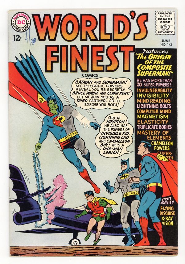 Cover pencils by Curt Swan, inks by George Klein. Are You a Good Neighbor? public service announcement, script by Jack Schiff, art by Sheldon Moldoff. The Composite Superman starring Superman and Batman, script by Edmond Hamilton, pencils by Curt Swan, inks by George Klein (part 1) and Sheldon Moldoff (part 2); A freak accident gives Joe Meach the powers of the entire Legion of Super-Heroes and he becomes the Composite Superman. Flame Dragon From Krypton starring Superman, script by Jerry Siegel, pencils by Wayne Boring, inks by Stan Kaye; A Kryptonian Flame-Dragon makes it way to Earth; When it swallows a Red Kryptonite meteor Superman must stay away from the Flame-Dragon for fear the Red Kryptonite will effect him also. 36 Pages, Full Color. Cover price $0.12.
