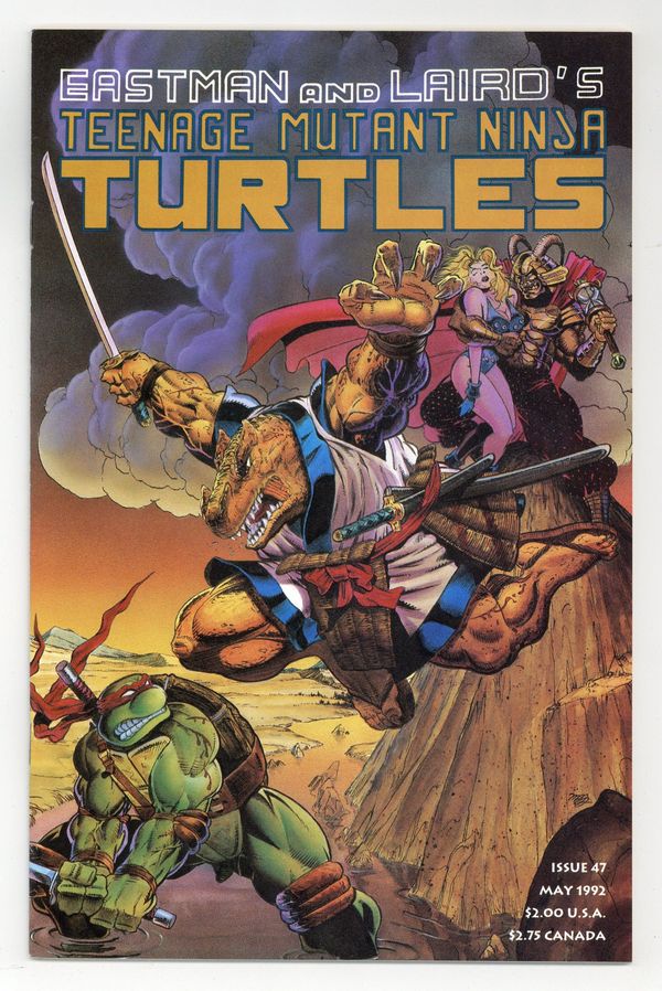 Published May 1992 by Mirage Studios.$152.00Masks, Part 2. In feudal Japan, the Turtles battle the mutated dinosaur warrior Chote. Story, art and cover by Michael Dooney. Backup story features Usagi Yojimbo meeting Space Usagi! Story and art by Stan Sakai. Black and white; 40 pages. Cover price $2.00. Cover price $2.00.
