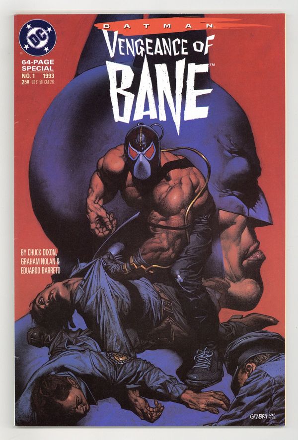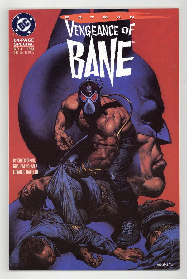 1st printing - In Batman Sword of Azrael (1992) #1-4, a major new hero was introduced to the Batman mythos. Now, another character is added to the Batman family. Only this time, it's a villain. Bane is the sole survivor of the Venom experiments (first revealed in Batman Legends of the Dark Knight (1989-2007) #16-20), an attempt to create drug-enhanced killing machines. As a result of these tests, Bane has spent a lifetime as the toughest inmate in the worst prison on the South American island of Santa Prisca where he acquired his berserk strength, a savage, calculating intellect, and an unparalleled megalomania. He ultimately sets his sights on Gotham City, and goes gunning for the Dark Knight. Written by Chuck Dixon, with art by Graham Nolan and Eduardo Barreto. Painted cover by Glenn Fabry. 68 pages. Cover price $2.50.