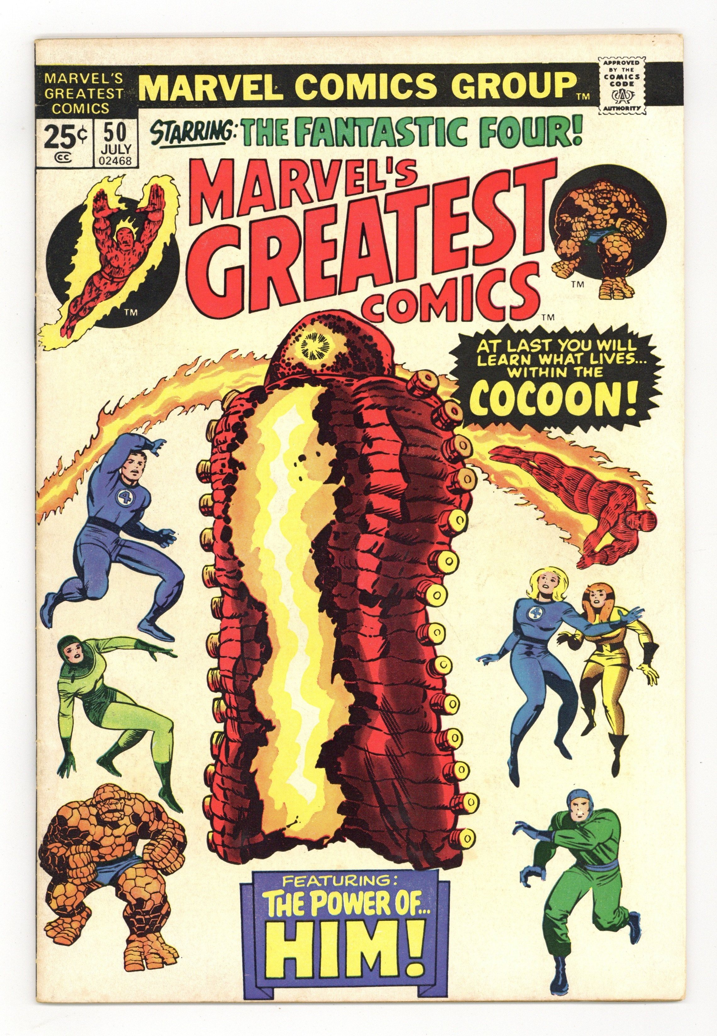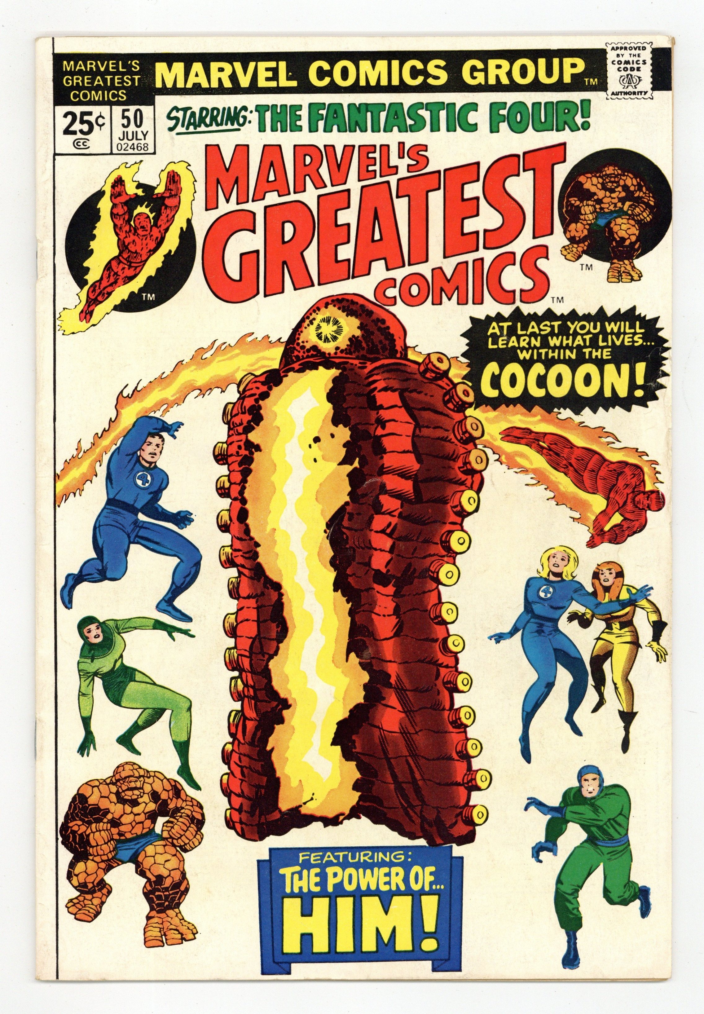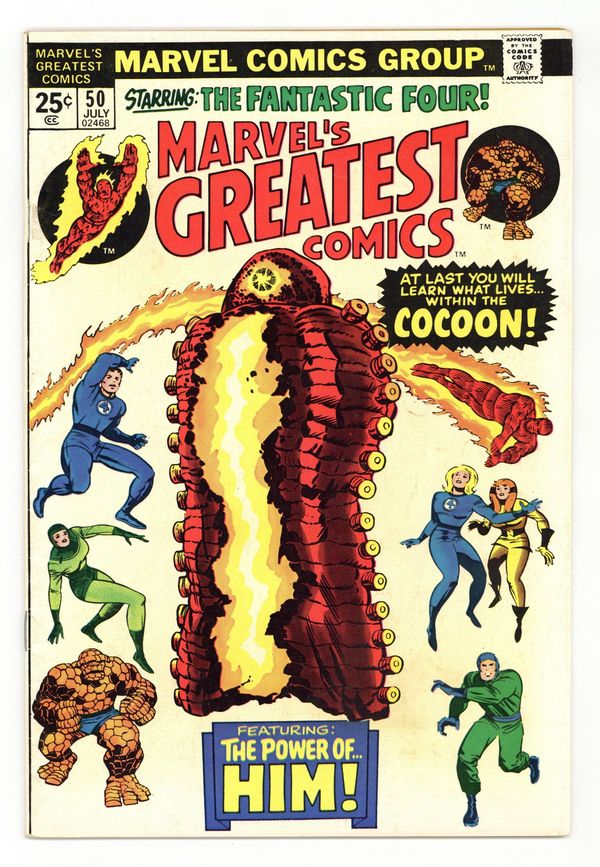 Cover pencils by Jack Kirby, inks by Joe Sinnott. "When Opens the Cocoon," script by Stan Lee, pencils by Jack Kirby, inks by Joe Sinnott; Deep in Lock 41 of the Beehive, Alicia encounters some of the organizations horrifying experiments; Him emerges from a cocoon, intent on the destruction of its creators; The FF pulls off their most daring rescue mission yet!; Reprinted from Fantastic Four #67. 36 pgs., full color. Cover price $0.25.