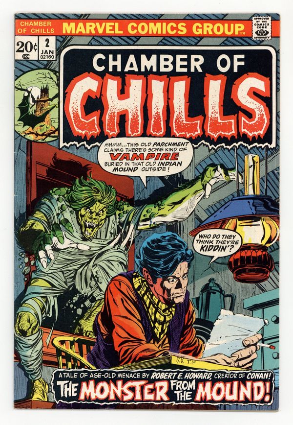 Cover pencils by Gil Kane, inks by Tom Palmer. All new stories: The Monster from the Mound!, script by Gardner Fox (adaptation), art by Frank Brunner; A greedy rancher scoffs at the legend of the local Indian burying ground and digs it up, looking for buried treasure, but releases a vampire; adapting the story "The Horror From the Mound" by Robert E. Howard. Thirst, script by Steve Gerber and Dan Adkins (plot), pencils by Craig Russell, inks by Dan Adkins; A vampire awakens from a sleeping tube on a space ship and kills everyone aboard. Spell of the Dragon, script by John Jakes and Dan Adkins (plot), pencils by Dan Adkins (layouts) and Val Mayerik, inks by Joe Sinnott; The swordsman Brak is sent by a witch to kill a dragon, but she doesn't tell him that he will be compelled to kill the next person he sees after he performs the deed. 36 pgs., full color. $0.20. Cover price $0.20.