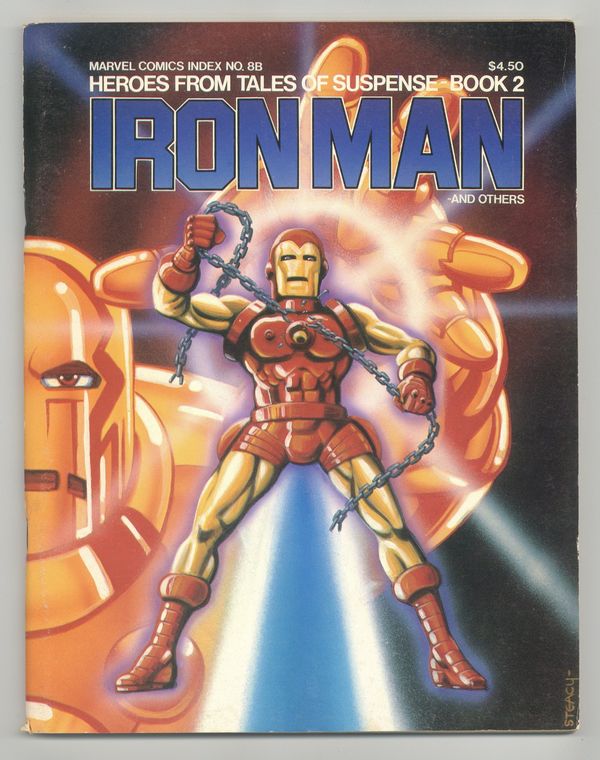 Magazine series devoted to indexing Marvel Comics Series with synopsis of each title, and info (picture of cover, date, story title, art & writing credits, character appearances and other comments) on each issue of the series. Also Includes a list of crossover appearances. THIS ISSUE covers Heroes from Tales of Suspense Book 2. Ken Steacy cover. Synopsis of Iron Man. Notes on Iron Man & Sub-Mariner # 1, Iron Man # 1-118, Annuals # 1-4, Giant Size # 1. Amazing Adventures (1970's series) # 1-25. Inhumans # 1-12. The Cat # 1-4. Ms. Marvel # 1-21. Nova # 1-23. Omega the Unknown # 1-10. Skull the Slayer # 1-8. Personnel & Major Character cross reference indexes. Golden Age cover gallery. Cover price $4.50.