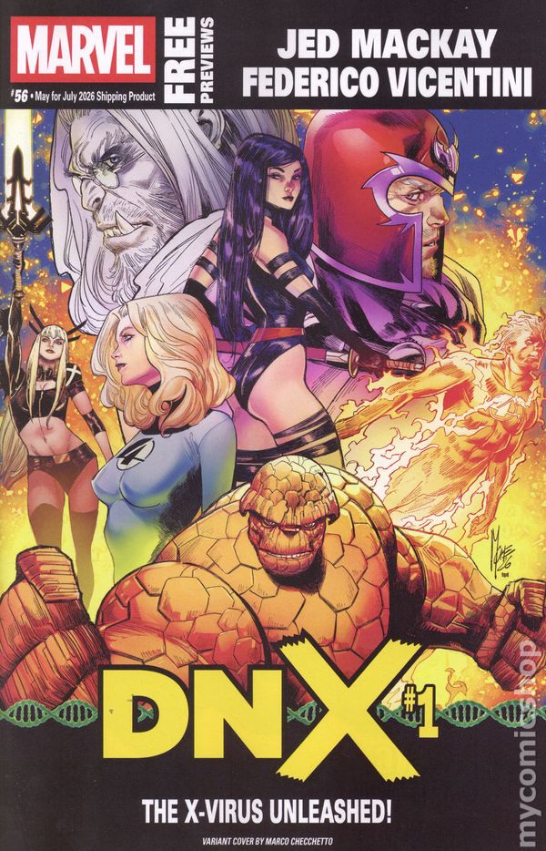 This March issue features items scheduled to ship in May 2026 and beyond. Cover by Ryan Stegman (Queen in Black). Each issue of Marvel Previews is a comic book-sized, full-color guide and preview to all of Marvel's upcoming releases - it's your #1 source for advance information on Marvel Comics! Highlights from within this issue: Queen in Black #1 interior art by Iban Coello; Queen in Black character designs by Ryan Stegman and R.B. Silva; Amazing Spider-Man #1000/Queen in Black #1 CGD 2026 interior art; Armageddon/X-Men #1 CGD 2026 interior art; Reborn: Ultimate Impact #1 interior art by Stefano Caselli; Captain America Vol. 1: Our Secret Wars TPB interior art by Valerio Schiti. 104 pages, full color. Rated T+ Cover price $0.25.
