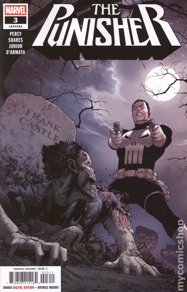 (W) Benjamin Percy (A) Jose Luis Soares (CA) David Marquez BATTERED, BRUISED & BLOODIED! Frank Castle is on the run - from TOMBSTONE, from JIGSAW and from the ghosts of his past! Like a wounded animal with hunters flanking on all sides, Frank will have one choice: FIGHT OR DIE! RATED PARENTAL ADVISORY. Cover price $4.99.