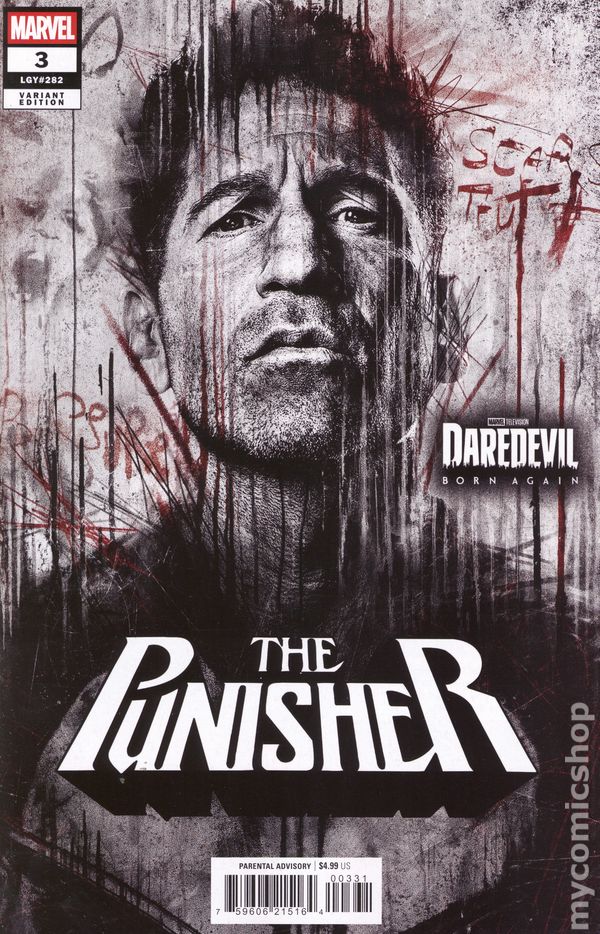 (W) Benjamin Percy (A) Jose Luis Soares (CA) Jonas Scharf BATTERED, BRUISED & BLOODIED! Frank Castle is on the run - from TOMBSTONE, from JIGSAW and from the ghosts of his past! Like a wounded animal with hunters flanking on all sides, Frank will have one choice: FIGHT OR DIE! RATED PARENTAL ADVISORY. Cover price $4.99.
