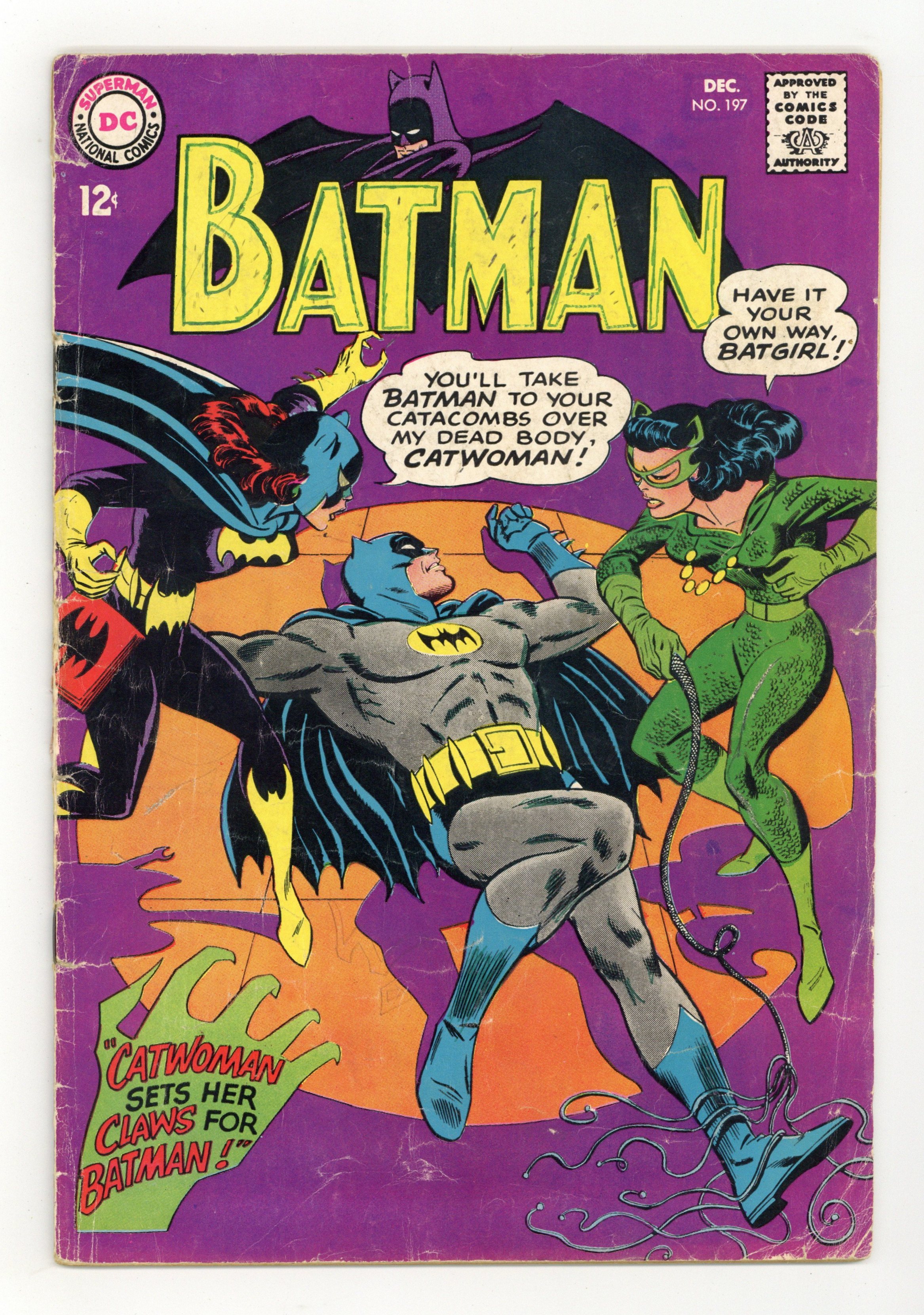 Cover pencils by Carmine Infantino, inks by Mike Esposito. 4th Silver Age appearance of Catwoman in book-length story, "Catwoman Sets Her Claws for Batman!", script by Gardner Fox, pencils by Frank Springer (as Bob Kane), inks by Sid Greene; Catwoman decides to reform and become a crime fighter like Batman in order to get him to somehow propose to her; When he doesn't, she gives him an ultimatum: to marry her or she returns to crime! Letters to the editor from comics historian Peter Sanderson Jr. and Bob Pinaha (New England Comics). Cap's Hobby Hints activity half-page by Henry Boltinoff. 36 Pages, Full Color. Cover price $0.12.