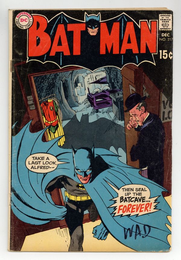 Cover by Neal Adams. Batman and Robin in book-length story, "One Bullet Too Many!" Script by Frank Robbins, pencils by Irv Novick, inks by Dick Giordano; Breakup of Batman & Robin team; Dick Grayson goes to college; Bruce and Alfred move from Wayne Manor to the Wayne Foundation. Strange Old Laws non-fiction humor page by Henry Boltinoff. 36 Pages, Full Color. Cover price $0.15.