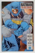 Tags: Batman$15.00First printing. Direct Edition. NOTE: 1st printing has almost matching grey background on inside front cover and facing page. 2nd printing doesn't have matching gray background--grays are very different. 3rd printings are labeled as such. Cover by Frank Miller. "Dark Knight Triumphant," script by Frank Miller, pencils by Frank Miller, inks by Klaus Janson; an aging Batman battles the Mutant gang and their anonymous leader; While walking to work, considering retirement, Jim Gordon is almost killed by a 17-year old boy with an M60; Carrie Kelly, a young girl who owes her life to Batman, seeks out her hero and becomes Robin. 52 pgs., full color. Cover price $2.95.
