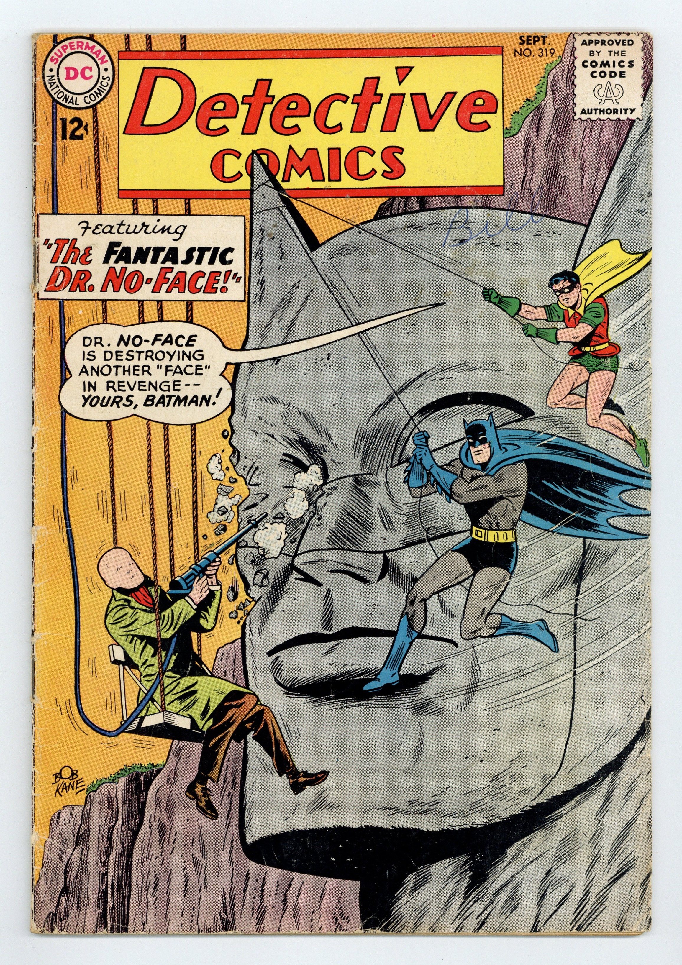 Cover art by Sheldon Moldoff. "The Fantastic Dr. No-Face" starring Batman and Robin, script by Dave Wood, pencils by Sheldon Moldoff, inks by Charles Paris; Doctor Paul Dent becomes a faceless criminal, after a serious accident with a machine he created in order to erase scars from skin tissue; Adopting the alias of Dr. No-Face, he begins a crime spree whose motif is mutilating representations of faces; Batman and Robin capture him, not knowing that such is part of No-Faces plan; However, after a quick investigation of the particular modus operandi, the Dynamic Duo learn that No Face is in fact the criminal known as Bart Regan, who was impersonating Dent during the experiment and after he lost his facial features, he decided to start the crime spree in order to frame Dent while he was exonerated. The Money Detectives article. "J'onn J'onzz--Wizard of 1463" starring John Jones Manhunter from Mars, art by Joe Certa; Manhunter goes on vacation and finds himself lost in the past. Casey the Cop humor page by Henry Boltinoff. 36 pgs., full color. Cover price $0.12.