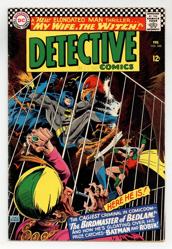 Written by Bob Kanigher. Art by Sheldon Moldoff and Joe Giella. Cover by Joe Kubert. Birdmaster of Bedlam!; an evil bird trainer named Birdmaster grounds airplanes in Gotham City, spurring Batman and Robin to take the skies in the Batplane. Written by Gardner Fox. Art by Carmine Infantino and Sid Greene. My Wife, the Witch! Ralph Elongated Man Dibny and Sue Dibny check into a haunted hotel room. Cap's Hobby Center by Henry Boltinoff. Casey the Cop humor page by Henry Boltinoff. 36 pages, full color. $0.12. Cover price $0.12.