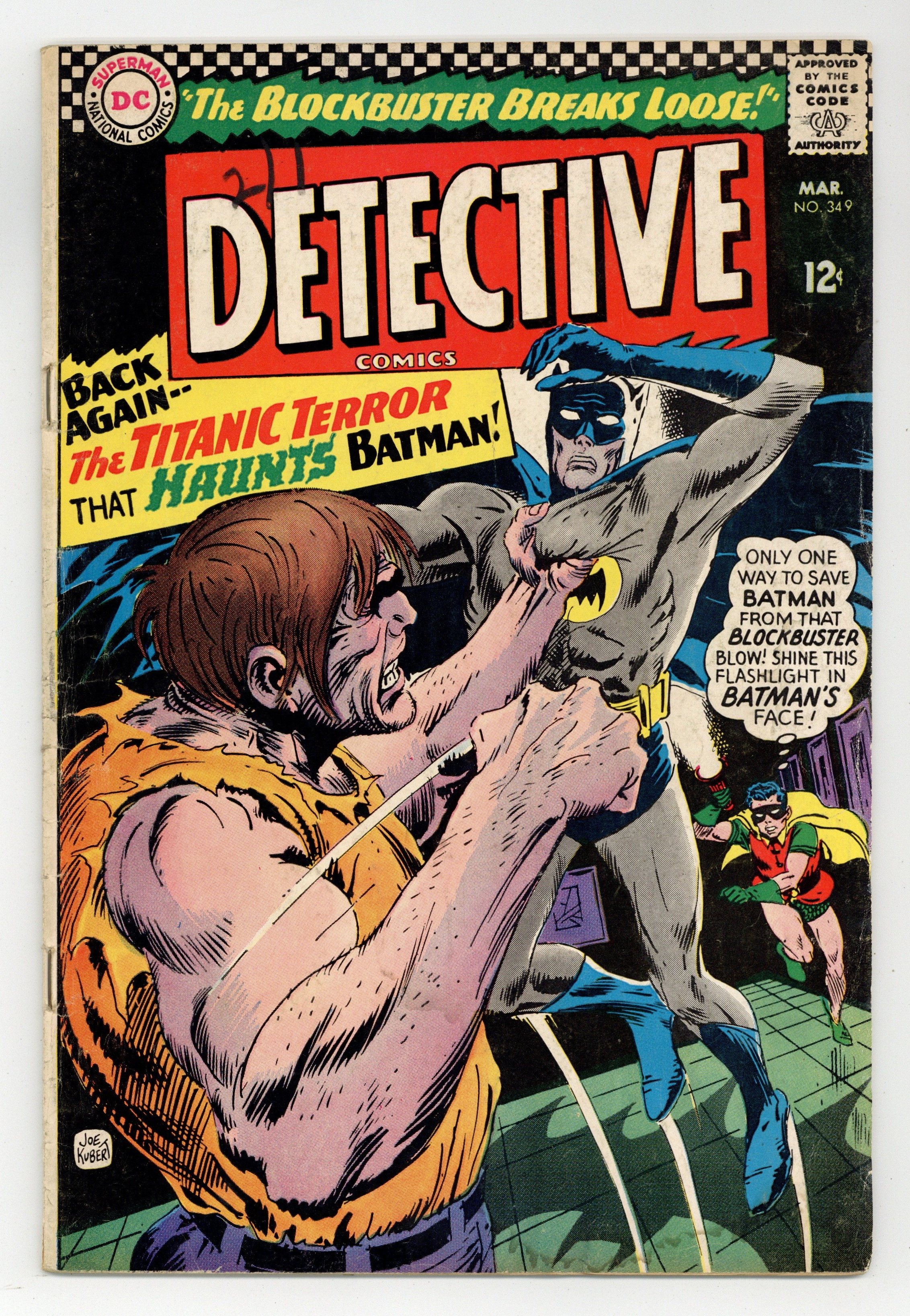 Written by Gardner Fox. Art by Carmine Infantino and Joe Giella. Cover by Joe Kubert. The Blockbuster Breaks Loose!; After months of being hidden in a cave underground, the Blockbuster reappears and dominated by the Outsider tries to kill Batman, in the fight Batman is knocked out and is trapped in a coffin; Then a confused Blockbuster begins to attack the Outsider and sends it far away. Written by Gardner Fox. Art by Carmine Infantino. The 13 O'Clock Robbery!; The Elongated Man and his wife Sue decide to go fishing at Lake Cherokee without knowing that this lake is dry. Casey the Cop humor page by Henry Boltinoff. Cap's Hobby Hints by Henry Boltinoff. 36 pages, full color. $0.12. Cover price $0.12.