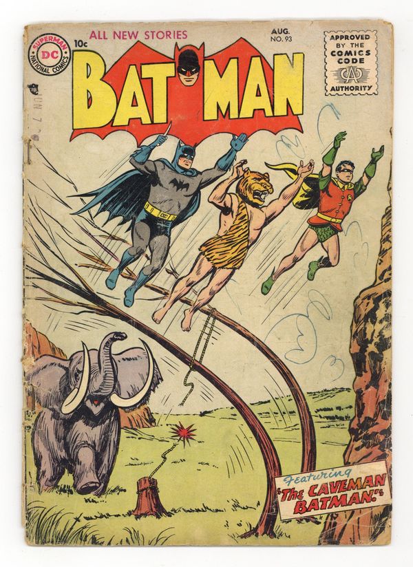 Cover by Win Mortimer. "Journey To the Top of the World!", script by Bill Finger, pencils by Dick Sprang (as Bob Kane), inks by Charles Paris; Batman and Robin are informed of the loss of valuable microfilm atop Mount K-4, which reveals the names of many members of an international crime cartel. Trixy the Puzzle Monkey activity page. "Batman, Baby-Sitter!", script by Bill Finger, pencils by Dick Sprang, inks by Charles Paris; Unexpectedly, Bruces' cousin Jane drops off her child for him to care for, and Bruce is forced to not only care for the child, but to fight crime as well! One-page Little Pete story by Henry Boltinoff. "They Spot the Phony Gems" text story by Jack Miller. One-page Casey the Cop story by Henry Boltinoff. "The Caveman Batman," script by Edmond Hamilton, pencils by Dick Sprang, inks by Charles Paris; An amazing find by a noted scientist, showing dinosaur and man together, threatens that scientist's reputation until the Dynamic Duo go back in time to prove it true. 36 Pages, Full Color. Cover price $0.10.