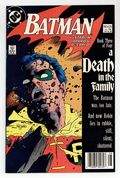 First printing. Newsstand Edition. Cover art by Mike Mignola. "A Death in the Family" part 3 of 4, script by Jim Starlin, pencils by Jim Aparo, inks by Mike DeCarlo; Death of Sheila Haywood; Burial of Sheila Haywood and Jason Todd; The Joker becomes the Iranian Ambassador to the U.N. Results of Phone Poll as to whether Robin dies this issue or not. NOTE: Most issues from 397-432 were reprinted in 1989 and sold in multipacks. These 2nd and 3rd prints have back cover ads dated 1989. 36 Pages, Full Color. Cover price $0.75.