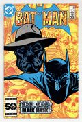 Tags: Batman$110.00Direct Edition. Cover by Tom Mandrake. "Black Mask: Losing Face" starring Batman, Commissioner Gordon, Harvey Bullock, Black Mask (1st appearance and origin), and Lucius Fox, script: Doug Moench, art by Tom Mandrake; Roman Sionis loses his family's company, Janus Cosmetics, and turns to a life of crime as Black Mask. Part 1 of 3, continued in Detective Comics (1937) #553. Missive by letter hack T.M. Maple. 36 Pages, Full Color. Cover price $0.75.