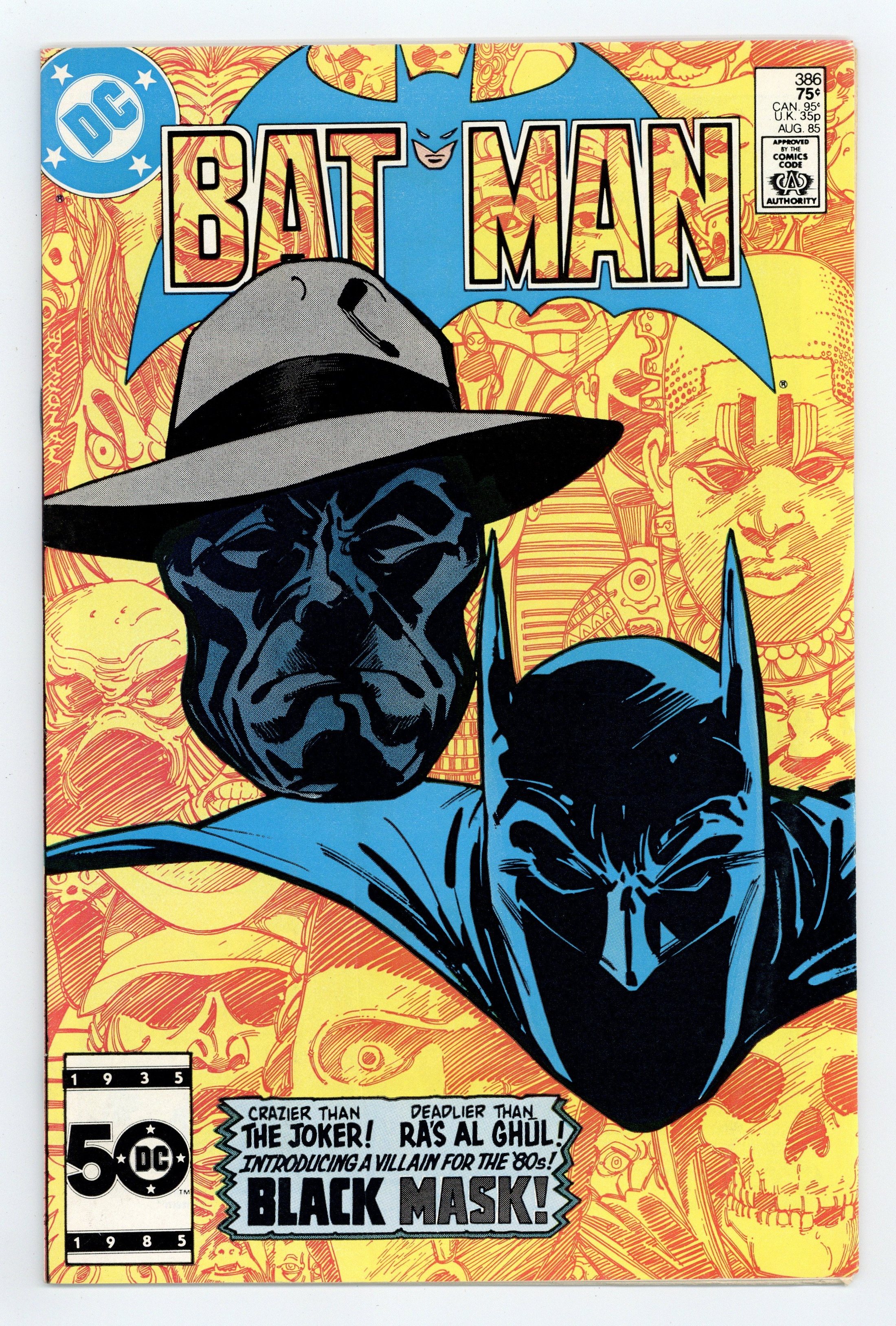 Direct Edition. Cover by Tom Mandrake. "Black Mask: Losing Face" starring Batman, Commissioner Gordon, Harvey Bullock, Black Mask (1st appearance and origin), and Lucius Fox, script: Doug Moench, art by Tom Mandrake; Roman Sionis loses his family's company, Janus Cosmetics, and turns to a life of crime as Black Mask. Part 1 of 3, continued in Detective Comics (1937) #553. Missive by letter hack T.M. Maple. 36 Pages, Full Color. Cover price $0.75.