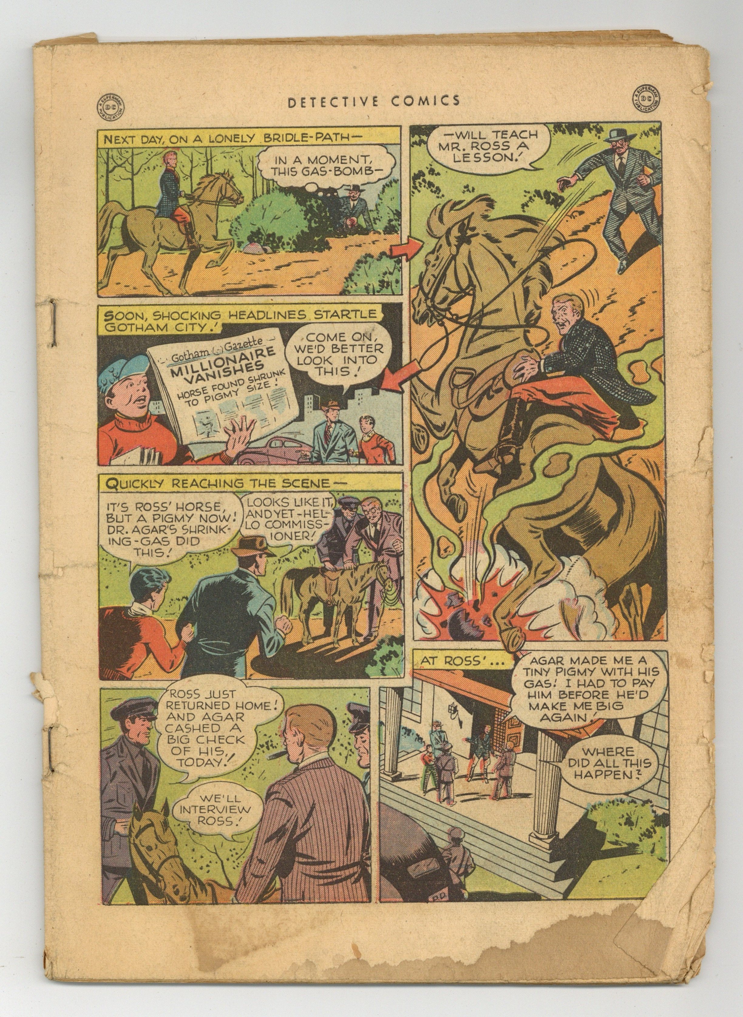 Cover by Charles Paris. Stories by Edmond Hamilton and unknown. Art by Charles Paris, Howard Sherman, Lee Harris, Curt Swan and Steve Brodie. A crazed scientist says that he has created a shrinking gas, but when he is laughed at by a group of wealthy possible investors, he uses a giant-sized room at his home to convince skeptics they have been shrunk, then he extorts money out of them. Don't miss Batman and Robin in "Pigmies in Giantland!" by Edmond Hamilton and Charles Paris. Plus: Slam Bradley in "Modern Paul Revere!" with art by Howard Sherman; Air Wave in "Rogues and Red Hots!" with art by Lee Harris; and The Boy Commandos in "Never-Say-Die Land" with art by Curt Swan and Steve Brodie. Also: Shorty the Fight Fan 1-pager by Phil Berube; 2-page text story "Nothing to Lose" by Tex Blane; and Daffy & Doodle half-pager by Lit-Win. And: 1-page Tootsie Roll ad "Captain Tootsie and the Log Jam Rescue" by C.C. Beck and Pete Costanza. 52 pages, full color. Cover price $0.10.
