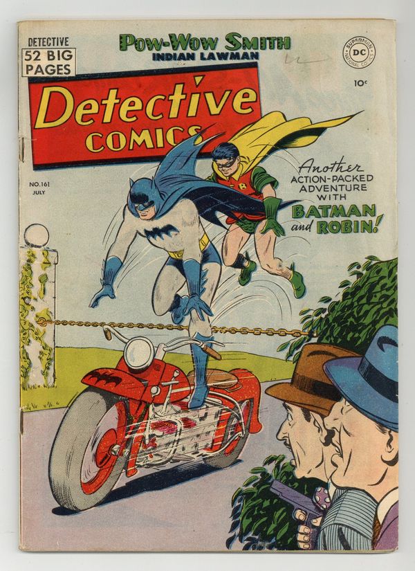Cover by Win Mortimer. Stories by Don C. Cameron and unknown. Art by Bob Kane, Lew Sayre Schwartz, Charles Paris, Tom Cooke, Dan Barry and unknown. Batman faces a clever criminal that targets theatrical producers, telling each of them that they will die at midnight. The "death" of Batman provides a clue to that killer. Don't miss Batman and Robin in "The Men Who Died on Time!" with art by Bob Kane, Lew Sayre Schwartz and Charles Paris. Plus: Pow-Wow Smith, Indian Lawman in "Two Detectives Named Smith!" with story by Don C. Cameron; Robotman in "Diamond Key to Doom!" with art by Tom Cooke; and Impossible -- But True! tale "The Human Super Weapon!" (featuring Roy Raymond) with art by Dan Barry. Also: Daffy & Doodle half-pager by Lit-Win, reprinted from Action Comics (1938 DC) #100; Little Pete 1-pager by Henry Boltinoff; 2-page text piece "Businessman's Best Friend"; and Casey the Cop half-pager by Boltinoff. 52 pages, full color. Cover price $0.10.