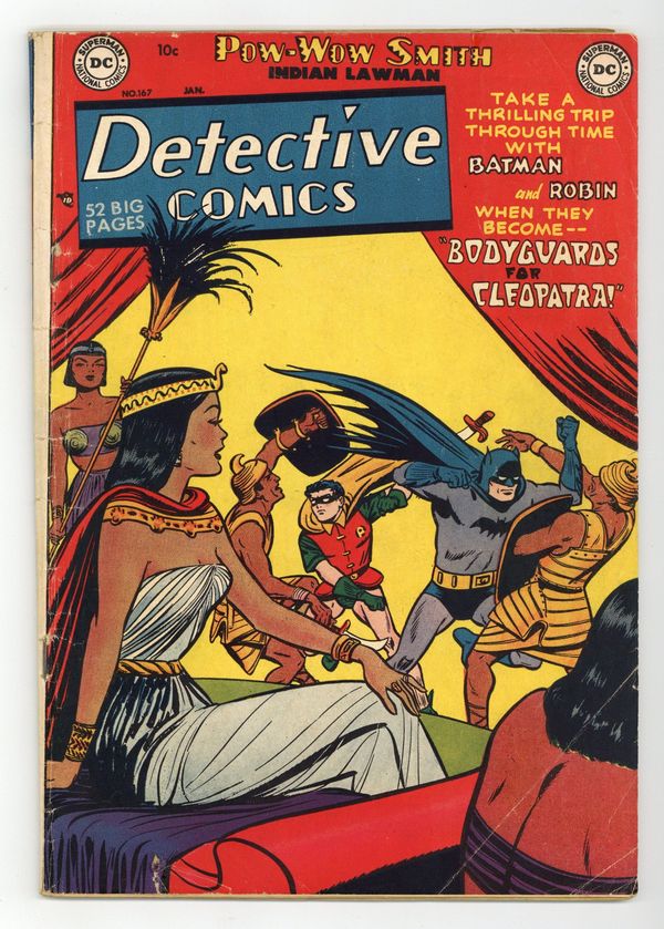 Cover by Win Mortimer. Stories by Bill Finger and unknown. Art by Dick Sprang, Charles Paris, Bruno Premiani, Frank Bolle and Dan Barry. Professor Nichols uses hypnosis to send Batman and Robin back to Cleopatra's Egypt to investigate their appearance in a mysterious ancient frieze in "Bodyguards to Cleopatra!" by Bill Finger, Dick Sprang and Charles Paris. Plus: Pow-Wow Smith, Indian Lawman in "The Killer Cougar of Shoe Mountain!" with art by Bruno Premiani; Robotman in "The Captured Brain!" with art by Frank Bolle; and Impossible -- But True! tale "The People Who Couldn't Grow Old!" (featuring Roy Raymond) with art by Dan Barry. Also: Shorty 1-pager by Henry Boltinoff; Funny Facts 1-pager by Martin Naydel; Jerry the Jitterbug 1-pager by Boltinoff; and 2-page text piece "Here Comes the Band!" And: Superboy in the 1-page public service announcement "How to Bring Christmas Cheer" by Jack Schiff, Win Mortimer and Creig Flessel. 52 pages, full color. Cover price $0.10.