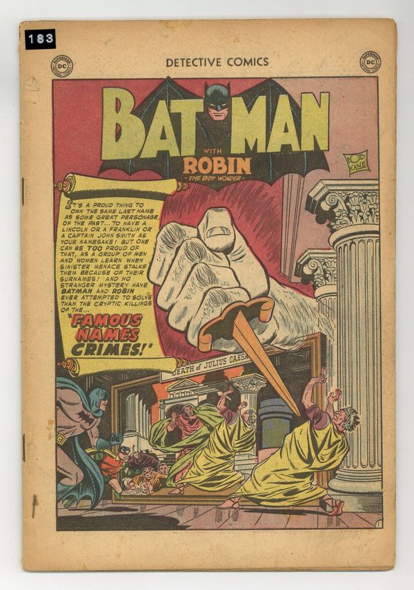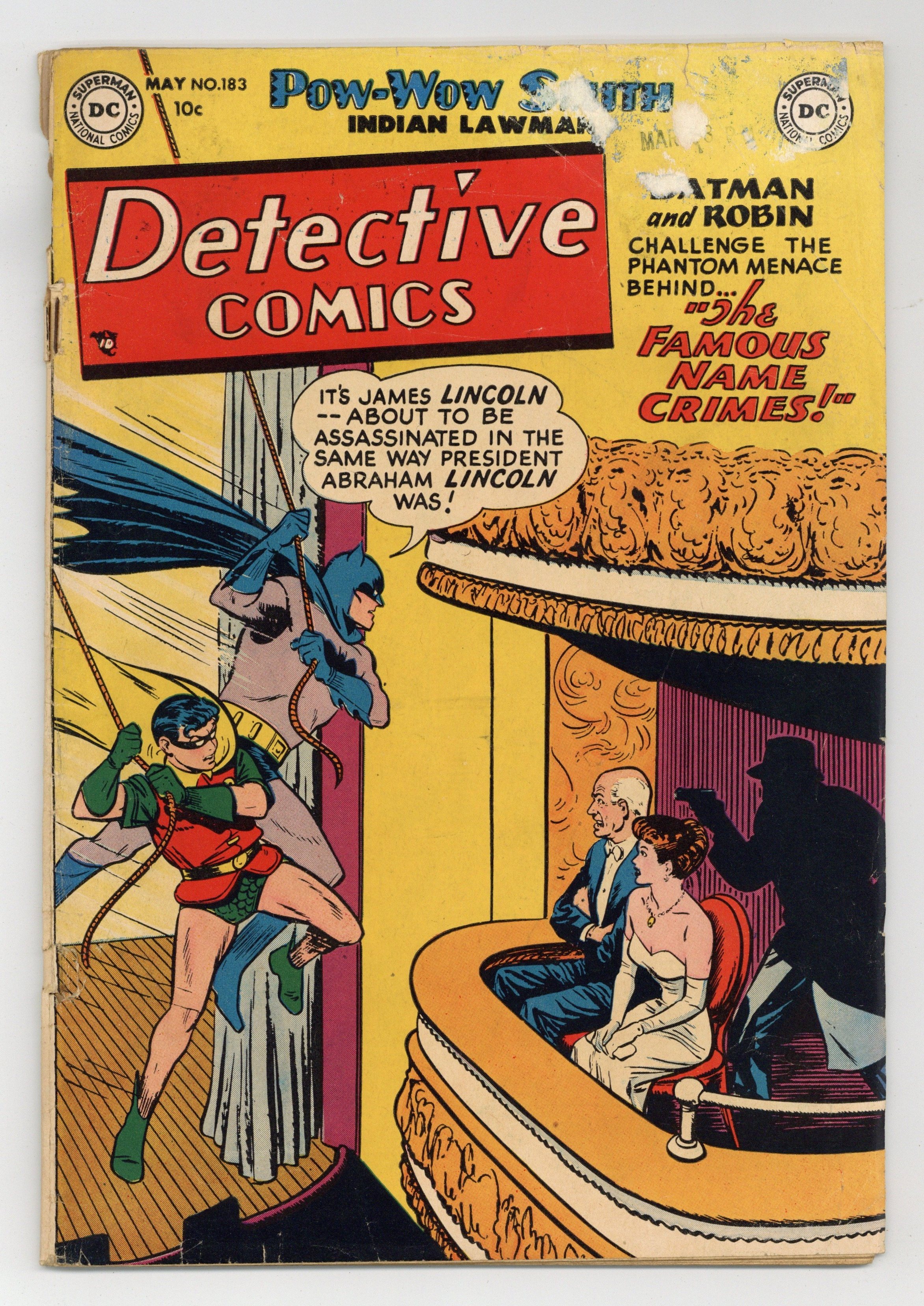 Cover by Win Mortimer. Stories by unknown. Art by Dick Sprang, Charles Paris, Leonard Starr, Ruben Moreira and unknown. Batman and Robin challenge the phantom menace behind the..."Famous Name Crimes!" with art by Dick Sprang and Charles Paris. Plus: Pow-Wow Smith, Indian Lawman in "Manhunt in Manhattan!" with art by Leonard Starr; Robotman in "The Wrecking of Robotman!"; and Impossible -- But True! tale "The Man in the Iceberg!" (featuring Roy Raymond) with art by Ruben Moreira. Also: Casey the Cop 1-pager by Henry Boltinoff; Varsity Vic half-pager by Boltinoff; and 2-page text piece "Phony Documents" by Dan Keene. And: Superboy in the 1-page public service announcement "Happy Hobby Time!" by Jack Schiff and Win Mortimer. 44 pages, full color. Cover price $0.10.