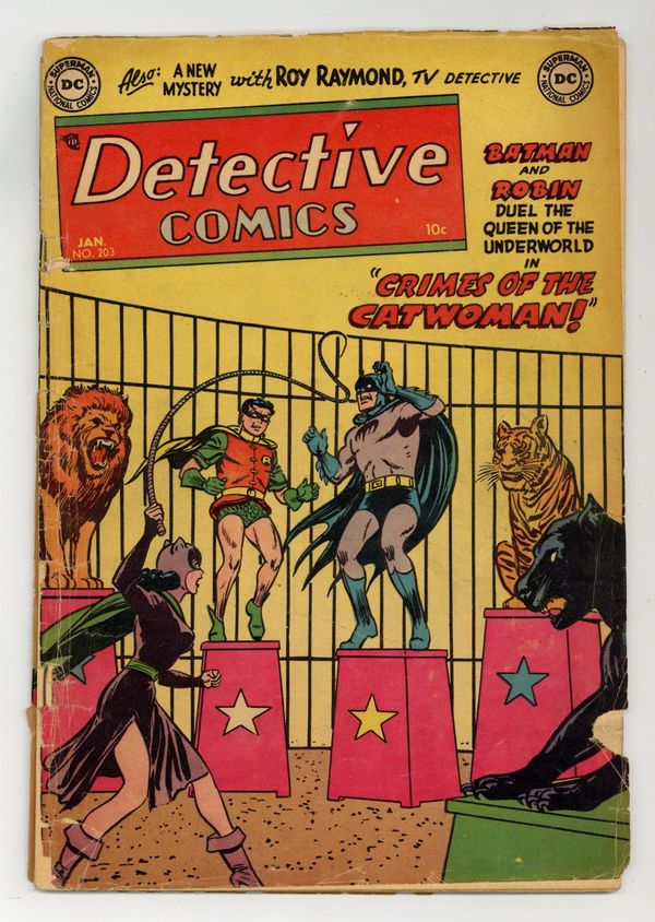 Cover art by Win Mortimer. Home, Sweet Home! public service announcement starring Binky, script by Jack Schiff, art by Bob Oksner. Crimes of the Catwoman! starring Batman and Robin, script by Edmond Hamilton, pencils by Bob Kane, inks by Charles Paris. The Fireproof Man! starring Roy Raymond TV Detective, art by Ruben Moreira. Casey the Cop humor page by Henry Boltinoff. The Great Ocean Showboat! starring Captain Compass, art by Joe Certa. Clamp the Cuffs on Him! text story by B. Weiner. Mysto Magician Detective, art by Leonard Starr. 44 pages, full color. Cover price $0.10.