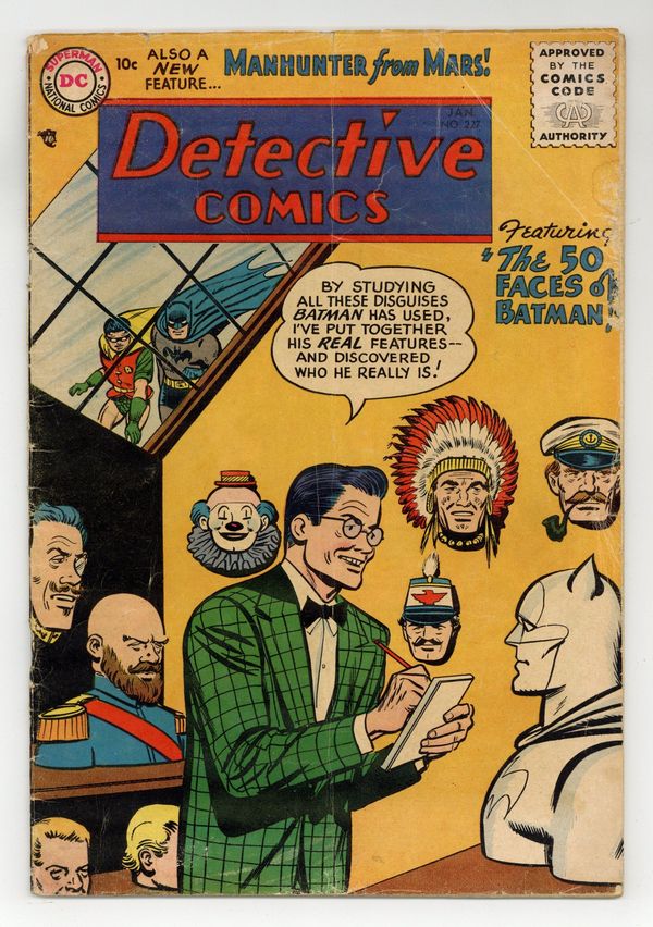 Cover art by Win Mortimer. The 50 Faces of Batman starring Batman and Robin, pencils by Sheldon Moldoff, inks by Charles Paris. The Genius With Super Power starring Roy Raymond TV Detective, script by Jack Miller, art by Ruben Moreira. New Eyes for the Law article by Jack Miller. The Man With 20 Lives starring John Jones Manhunter From Mars, script by Joe Samachson, art by Joe Certa. Batman Whirly-Word Game by Martin Naydel. 36 pgs. $0.10. Cover price $0.10.