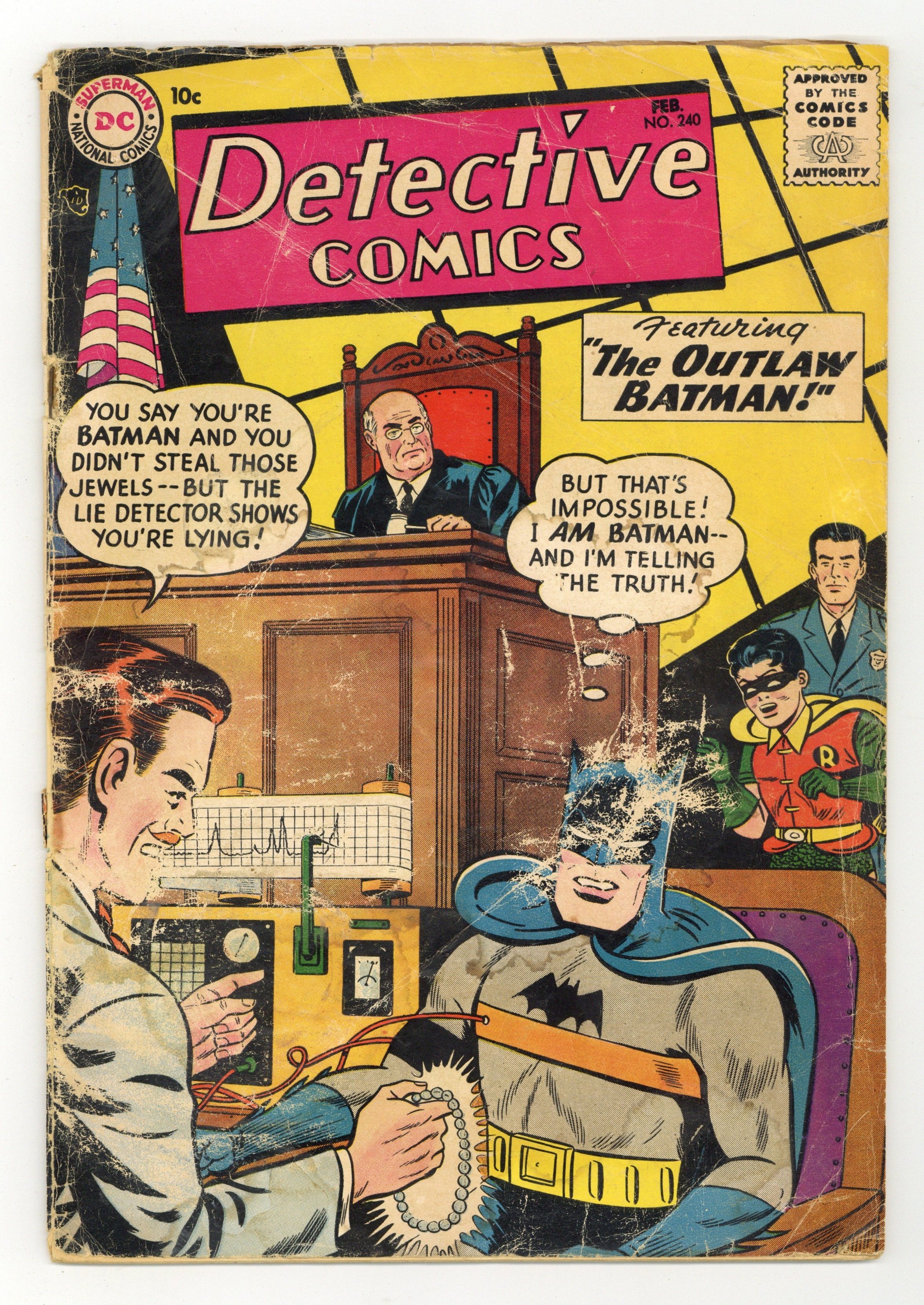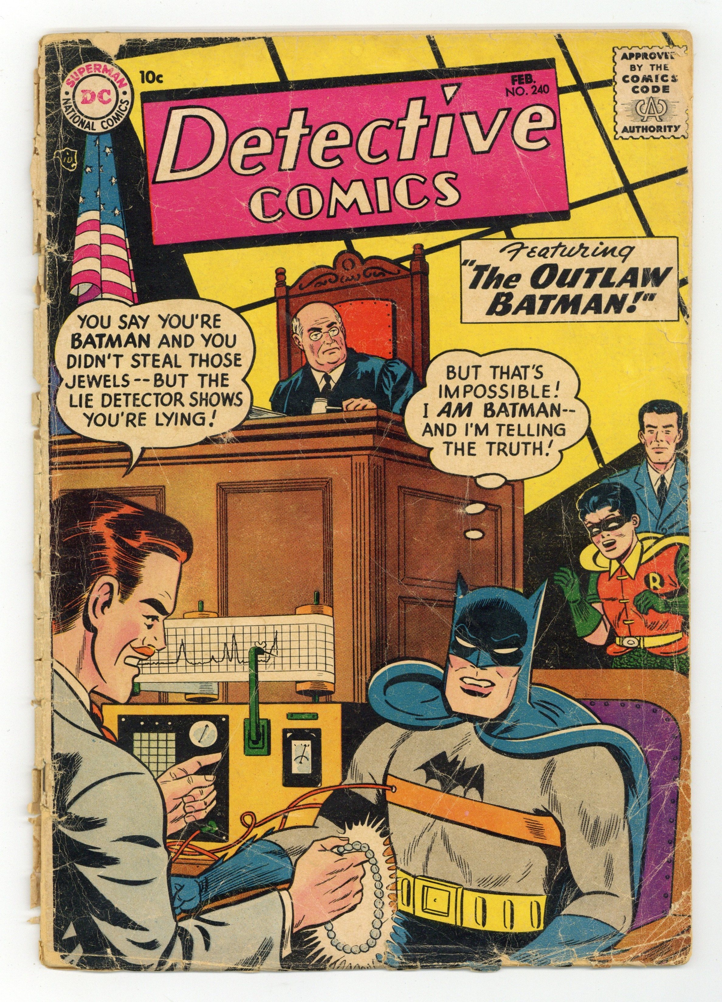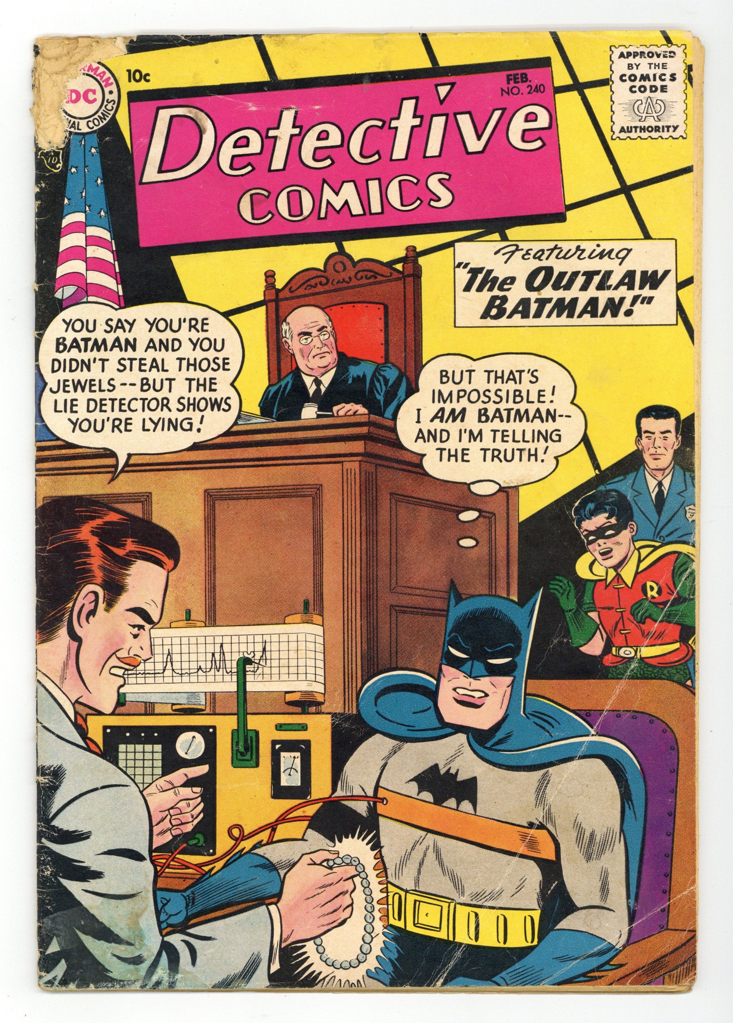 Cover art by Sheldon Moldoff and Charles Paris. The Outlaw Batman starring Batman and Robin, pencils by Dick Sprang, inks by Charles Paris. Roy Raymond's Greatest Challenge starring Roy Raymond TV Detective, art by Ruben Moreira. Casey the Cop humor page by Henry Boltinoff. Winter Sports Champions of the World public service announcement, art by Irv Novick. One-Man Detective Force article by Jack Miller (as Joe Mabely). The Hero Maker starring John Jones Manhunter from Mars, art by Joe Certa. Warden Willis humor page by Henry Boltinoff. 36 pgs. $0.10. Cover price $0.10.