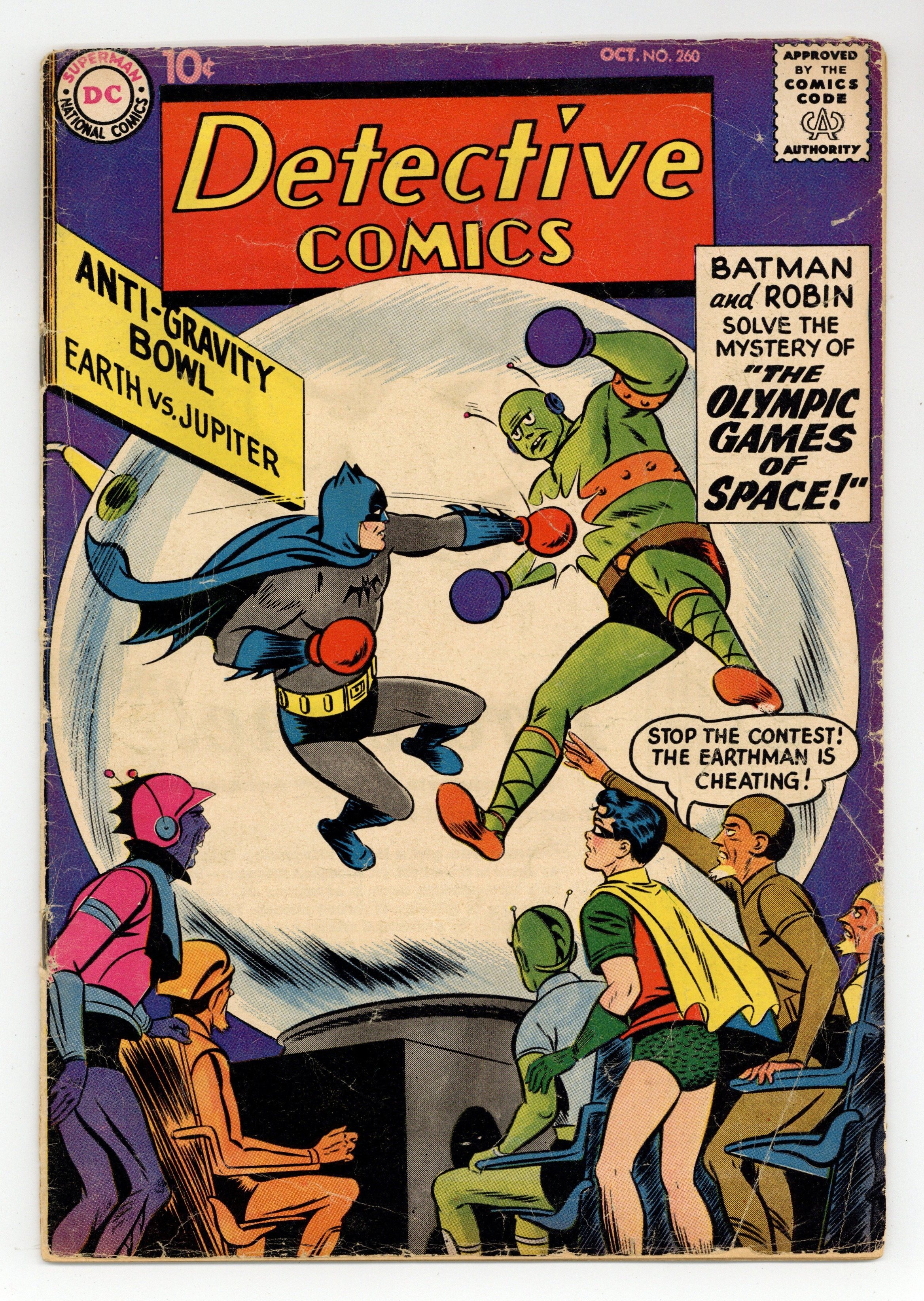 Cover pencils by Curt Swan, inks by Stan Kaye. "The Mystery of the Space Olympics" starring Batman and Robin, pencils by Sheldon Moldoff, inks by Charles Paris; Xeo and Tog from Venus ask Batman and Robin to participate in an interplanetary Olympics, but they are accused of conspiring with the Venusians to cheat. Lost—A Free Education! public service announcement starring Binky, script by Jack Schiff, art by Bob Oksner. "The Fantastic Forest!" starring Roy Raymond TV Detective, art by Ruben Moreira; Roy vs. Finch. The Bullet From Car 1021 article. Jail Jests humor page by Henry Boltinoff. Casey the Cop half-page by Henry Boltinoff. "John Jones' Super-Secret" starring John Jones Manhunter from Mars, art by Joe Certa; Manhunter helps a patrolman regain his confidence. 36 pgs., full color. Cover price $0.10.