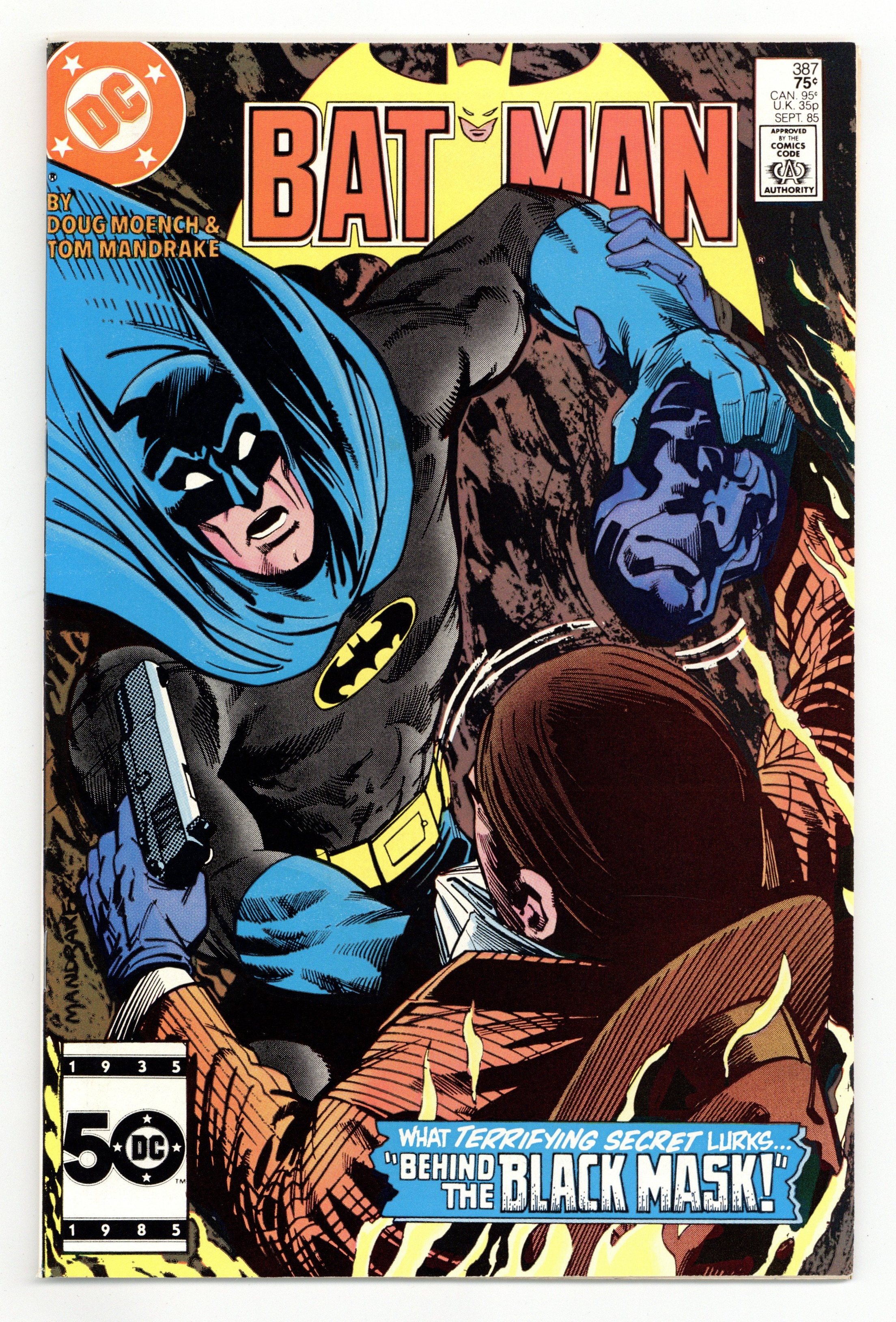 Cover art by Tom Mandrake. Ebon Masquery starring Batman, Robin, Alfred, Vicki Vale, Commissioner Gordon, Harvey Bullock, and Black Mask, script by Doug Moench, art by Tom Mandrake; to lure Black Mask, Bruce Wayne hosts a masquerade ball at Wayne Manor. Assault on Mount Mayhem starring Mask 16-page promo/preview, script by Michael Fleisher, pencils by Mike Chen, inks by Joe Delbeato. 52 Pages, Full Color. Cover price $0.75.
