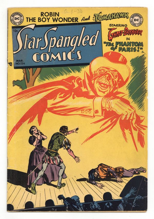 Tags: BatmanPublished Mar 1952 by National Periodical Publ.$130.00The Ghost-Breaker stars in "The Phantom of Paris," Robin stars in "Danger in the Hall of Trophies," Captain Compass stars in "Sabotage on the High Seas," and Tomahawk stars in "The Magic Tomahawk!" Cover price $0.10.