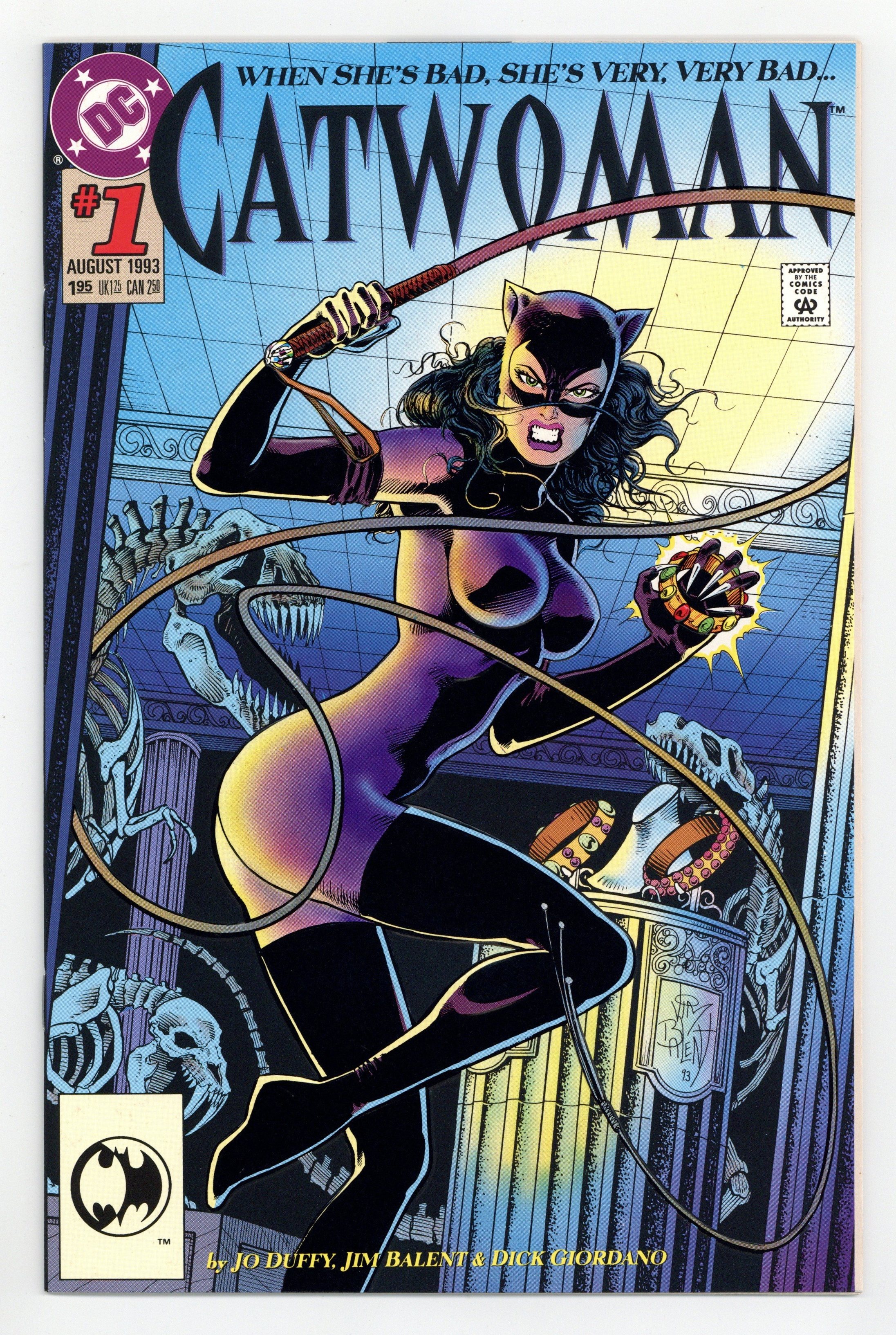 Bane's in charge and Catwoman's stealing on his behalf in "Life Lines Chapter 1: Rough Diamonds!" Part 1 of 4, continued next issue. Script by Jo Duffy, pencils by Jim Balent, inks by Dick Giordano. Balent embossed cover. Cover price $1.95.