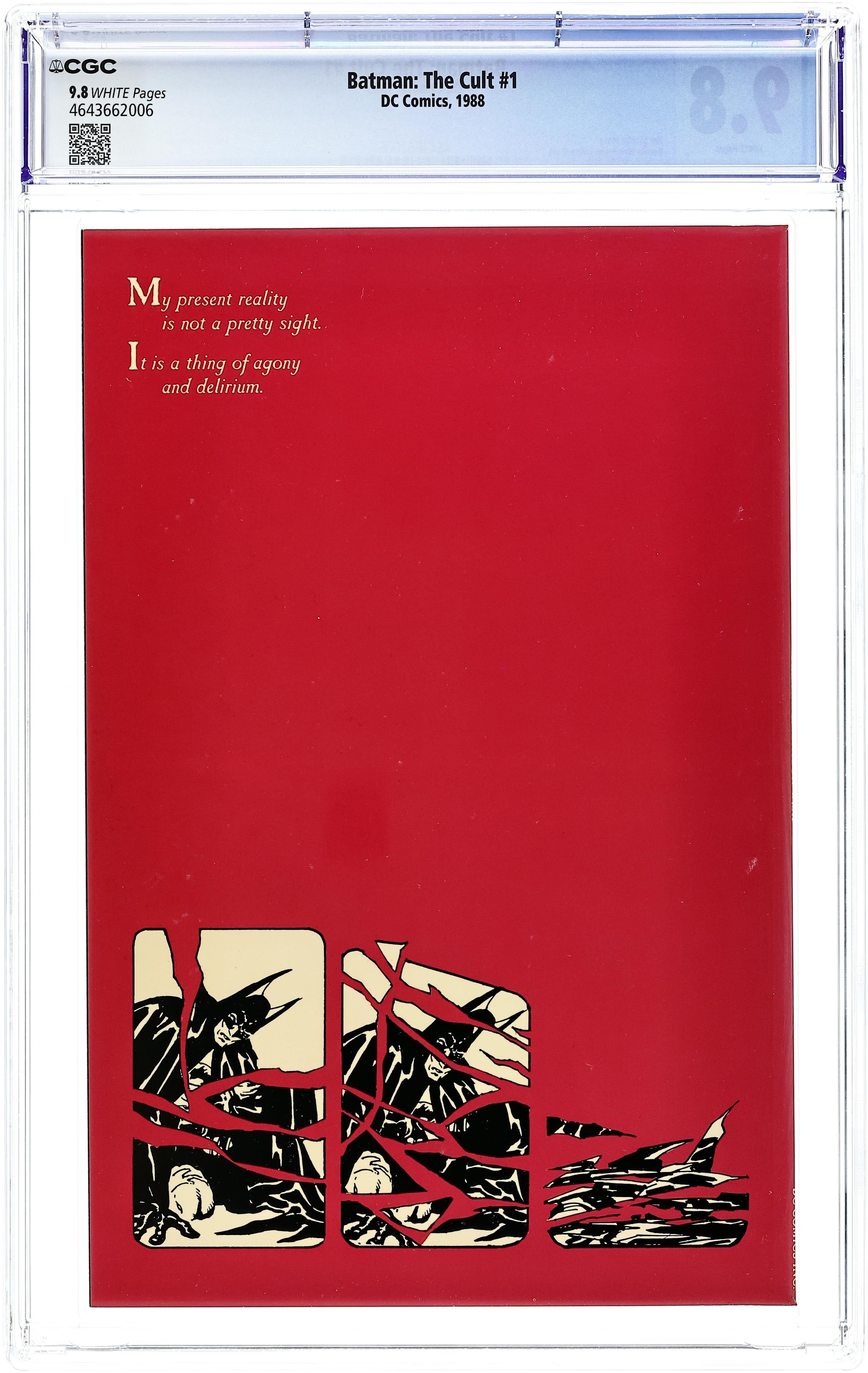 Book one of a four-issue series, "Ordeal" finds Batman prisoner of a religious cult led by Deacon Joseph Blackfire. The cult tries to break Batman's will and have him join in their cause. Prestige format, written by Jim Starlin with art by Bernie Wrightson. Cover price $3.50.