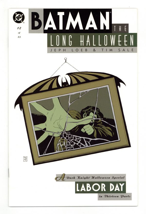 Starts Mar 9 "Labor Day." Holiday goes after Boss Maroni, while Two-Face meets Solomon Grundy. Further evidence revealing the true identity of Holiday is given. Script by Jeph Loeb, art and cover by Tim Sale. Cover price $2.95.