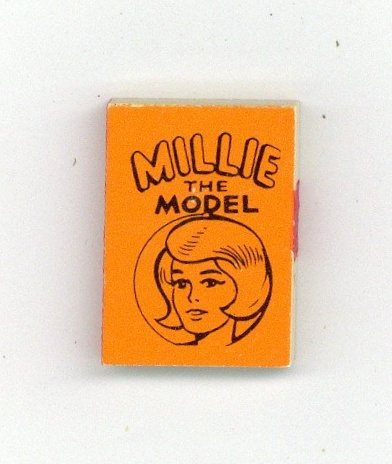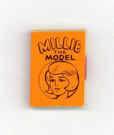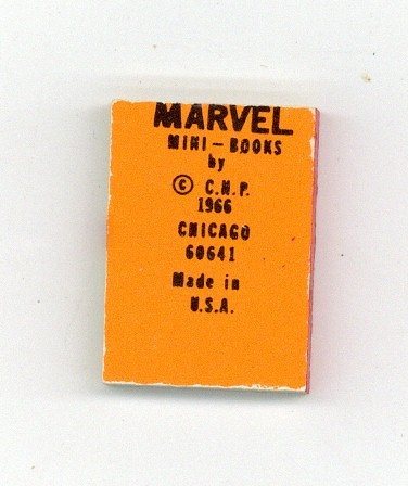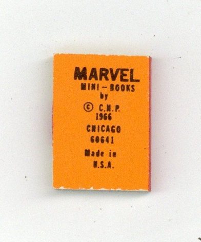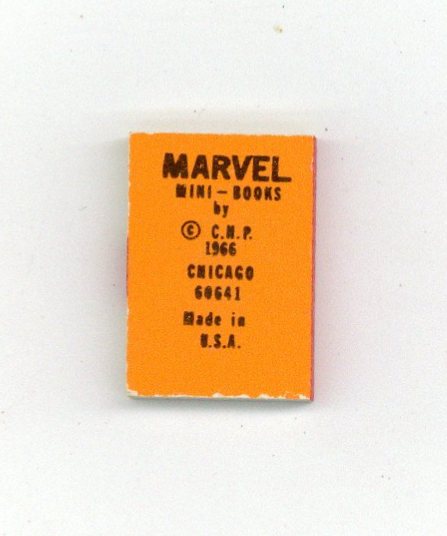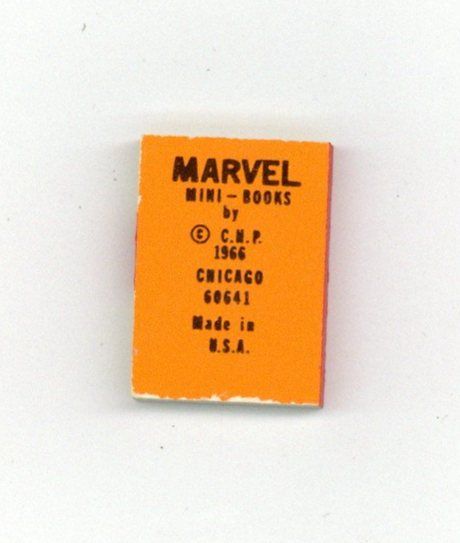 Tags: Marvel Mini Books, Minicomic$35.00The Millie the Model Marvel Mini Book is one in a set of 6 released in 1966 via gumball vending machines. These are the smallest "comics" ever made, measuring just 5/8-in. x 7/8-in. with 50 black-and-white interior pages, and glossy covers (in various bright background colors). Whereas the Wham-O Giant Comics is the largest comics series ever produced (about full newspaper dimensions), this little Marvel Mini series of six represents the world's smallest comics set! The complete Marvel Mini Books series featured one book each for: Captain America, the Hulk, Millie the Model, Sgt. Fury, and Spider-Man, and Thor. Each title was released in six different colors (Blue, Green, Lime, Orange, Red and Yellow). NOTE: Way back in 1966, Buddy Saunders, Lone Star Comics/mycomicshop.com's owner bought several bags of these little gems. Over the years, he gave many away to customers who placed back issue orders, and sold other for $5 to $10 each as they grew scarce. Today, these tiny little comics are very difficult to find, but make a cool addition to any comics collection.
