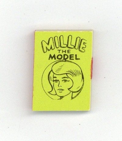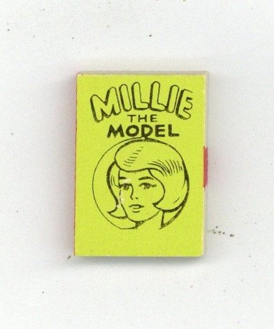 The Millie the Model Marvel Mini Book is one in a set of 6 released in 1966 via gumball vending machines. These are the smallest "comics" ever made, measuring just 5/8-in. x 7/8-in. with 50 black-and-white interior pages, and glossy covers (in various bright background colors). Whereas the Wham-O Giant Comics is the largest comics series ever produced (about full newspaper dimensions), this little Marvel Mini series of six represents the world's smallest comics set! The complete Marvel Mini Books series featured one book each for: Captain America, the Hulk, Millie the Model, Sgt. Fury, and Spider-Man, and Thor. Each title was released in six different colors (Blue, Green, Lime, Orange, Red and Yellow). NOTE: Way back in 1966, Buddy Saunders, Lone Star Comics/mycomicshop.com's owner bought several bags of these little gems. Over the years, he gave many away to customers who placed back issue orders, and sold other for $5 to $10 each as they grew scarce. Today, these tiny little comics are very difficult to find, but make a cool addition to any comics collection.