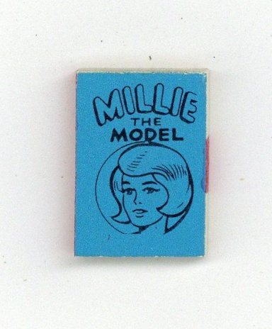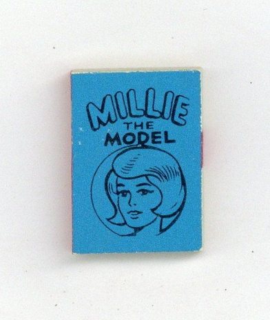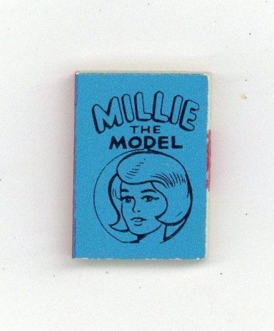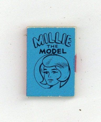 The Millie the Model Marvel Mini Book is one in a set of 6 released in 1966 via gumball vending machines. These are the smallest "comics" ever made, measuring just 5/8-in. x 7/8-in. with 50 black-and-white interior pages, and glossy covers (in various bright background colors). Whereas the Wham-O Giant Comics is the largest comics series ever produced (about full newspaper dimensions), this little Marvel Mini series of six represents the world's smallest comics set! The complete Marvel Mini Books series featured one book each for: Captain America, the Hulk, Millie the Model, Sgt. Fury, and Spider-Man, and Thor. Each title was released in six different colors (Blue, Green, Lime, Orange, Red and Yellow). NOTE: Way back in 1966, Buddy Saunders, Lone Star Comics/mycomicshop.com's owner bought several bags of these little gems. Over the years, he gave many away to customers who placed back issue orders, and sold other for $5 to $10 each as they grew scarce. Today, these tiny little comics are very difficult to find, but make a cool addition to any comics collection.