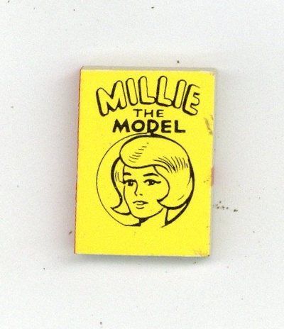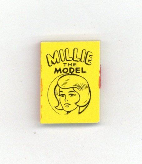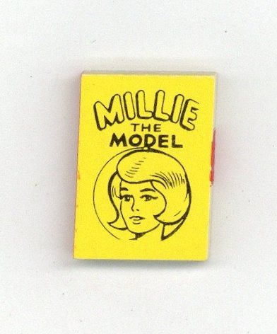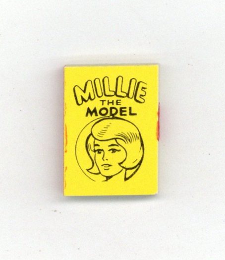 The Millie the Model Marvel Mini Book is one in a set of 6 released in 1966 via gumball vending machines. These are the smallest "comics" ever made, measuring just 5/8-in. x 7/8-in. with 50 black-and-white interior pages, and glossy covers (in various bright background colors). Whereas the Wham-O Giant Comics is the largest comics series ever produced (about full newspaper dimensions), this little Marvel Mini series of six represents the world's smallest comics set! The complete Marvel Mini Books series featured one book each for: Captain America, the Hulk, Millie the Model, Sgt. Fury, and Spider-Man, and Thor. Each title was released in six different colors (Blue, Green, Lime, Orange, Red and Yellow). NOTE: Way back in 1966, Buddy Saunders, Lone Star Comics/mycomicshop.com's owner bought several bags of these little gems. Over the years, he gave many away to customers who placed back issue orders, and sold other for $5 to $10 each as they grew scarce. Today, these tiny little comics are very difficult to find, but make a cool addition to any comics collection.