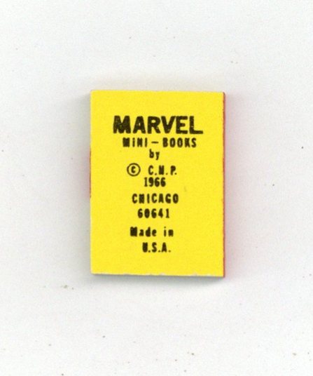 Tags: Marvel Mini Books, Minicomic$35.00The Millie the Model Marvel Mini Book is one in a set of 6 released in 1966 via gumball vending machines. These are the smallest "comics" ever made, measuring just 5/8-in. x 7/8-in. with 50 black-and-white interior pages, and glossy covers (in various bright background colors). Whereas the Wham-O Giant Comics is the largest comics series ever produced (about full newspaper dimensions), this little Marvel Mini series of six represents the world's smallest comics set! The complete Marvel Mini Books series featured one book each for: Captain America, the Hulk, Millie the Model, Sgt. Fury, and Spider-Man, and Thor. Each title was released in six different colors (Blue, Green, Lime, Orange, Red and Yellow). NOTE: Way back in 1966, Buddy Saunders, Lone Star Comics/mycomicshop.com's owner bought several bags of these little gems. Over the years, he gave many away to customers who placed back issue orders, and sold other for $5 to $10 each as they grew scarce. Today, these tiny little comics are very difficult to find, but make a cool addition to any comics collection.