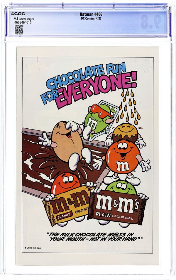 First Printing. Direct Edition. Batman Year One, Chapter Three: "Black Dawn". Part 3 of 4, continued from the previous issue. Story concludes next issue. An injured and cornered Batman is up against the police, James Gordon crosses a line, and Selina Kyle becomes Catwoman. Script by Frank Miller, art by David Mazzucchelli. Mazzucchelli cover. 1st printing. NOTE: Most issues from 397-432 were reprinted in 1989 and sold in multipacks. These 2nd and 3rd prints have back cover ads dated 1989. 36 Pages, Full Color. Cover price $0.75.