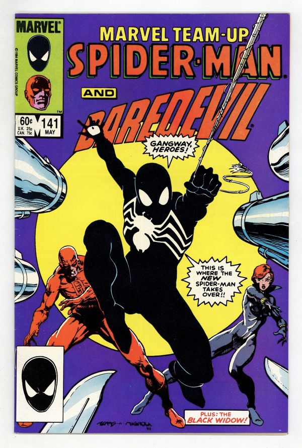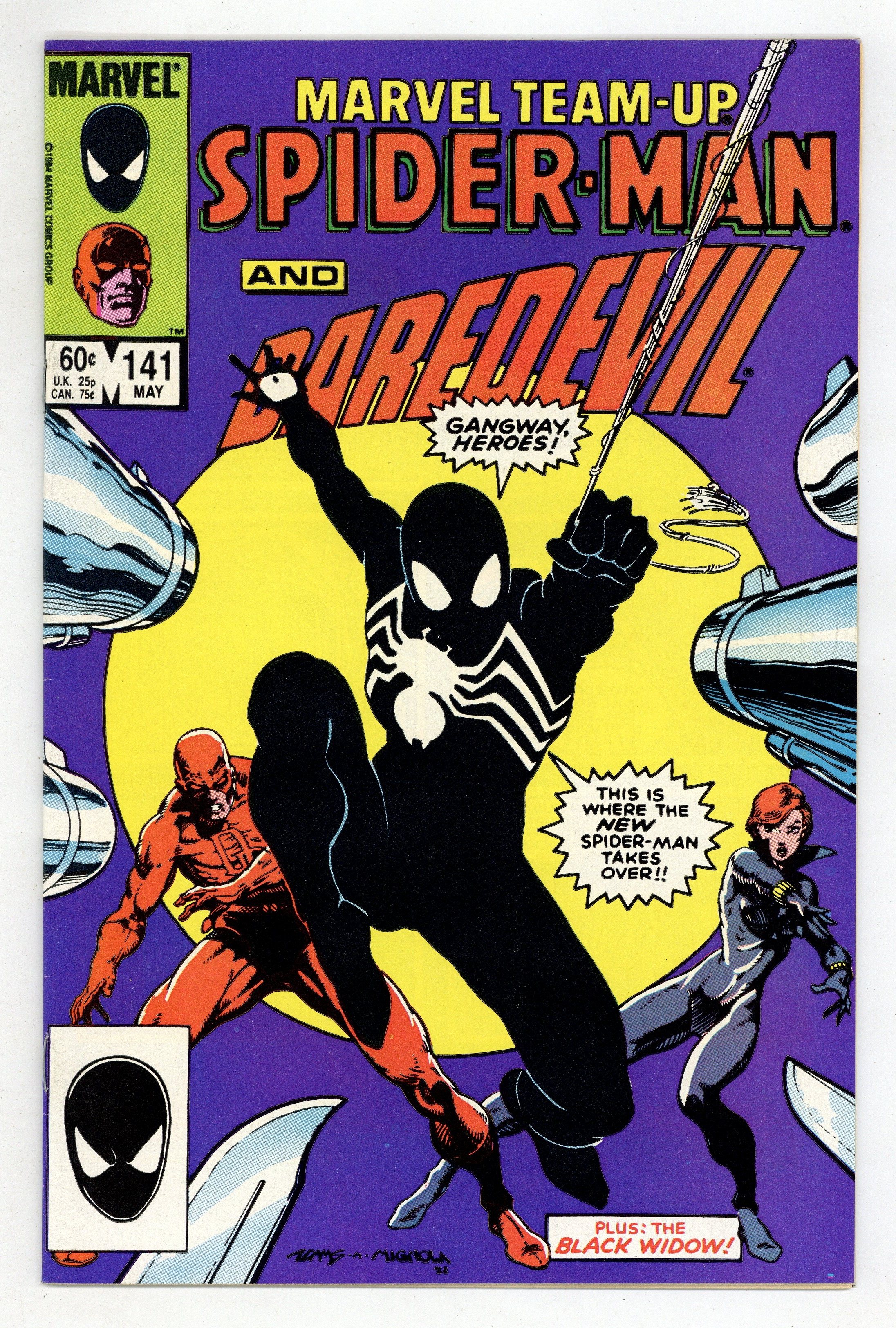 Tags: Chronological Appearances of Spider-Man's Black Costume (part 10 (1st app. after Official Debut)), Secret Wars (1984) (part Aftermath 06), Daredevil, Spider-ManMarvel Team-Up (1972 1st Series) 141D FN 6.0