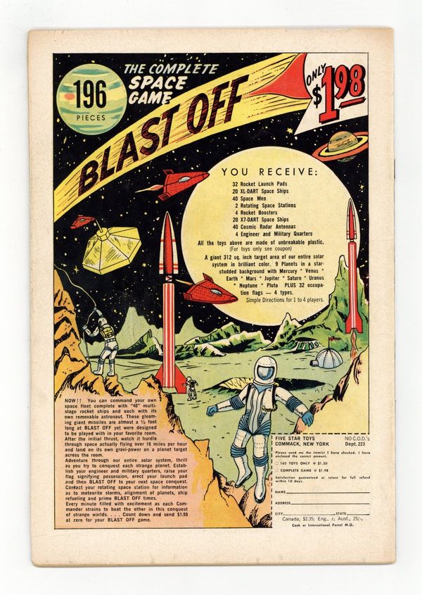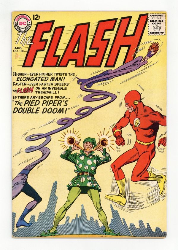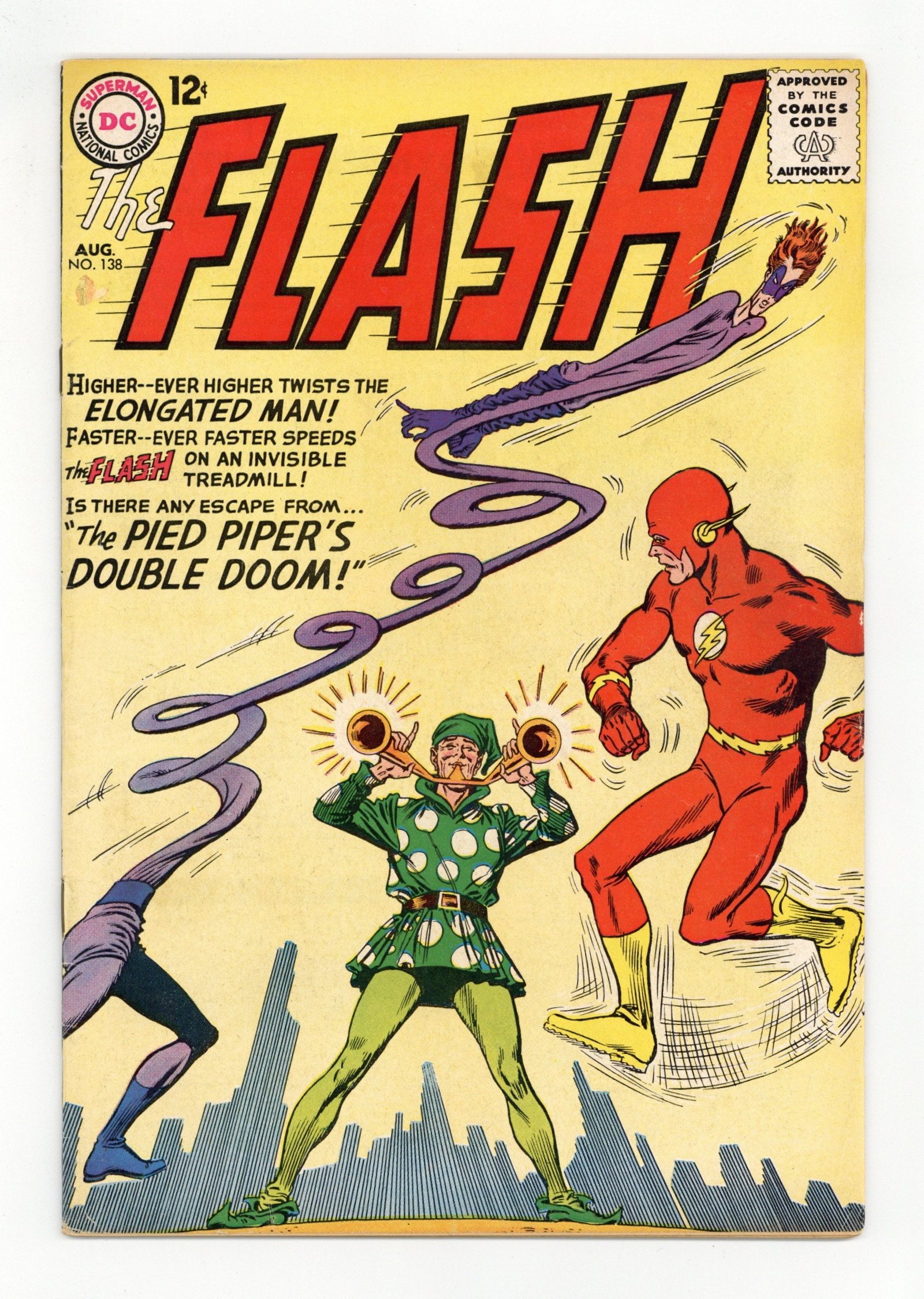 Cover pencils by Carmine Infantino, inks by Murphy Anderson. The Pied Piper's Double Doom!, script by Gardner Fox, pencils by Carmine Infantino, inks by Joe Giella; The Pied Piper uses his musical control to force both The Flash and The Elongated Man to commit robberies and forget they did so, but the heroes meet while trying to solve each others' crimes and realize the Pied Piper is behind the scheme, and defeat him. How NOT To Enjoy A Vacation! public service announcement, script by Jack Schiff, art by Ruben Moreira. Letter from super fan Jerry Bails regarding the relative merits of the current Flash stories vs. the stories from the 1940's. Mystery of the Matinee Idol!, script by John Broome, pencils by Carmine Infantino, inks by Joe Giella; Two crooks try to use Dexter Myles as a diversion to stage a jail break of their comrade, but are foiled by Kid Flash, and Dexter is awarded a spot in the summer festival Playhouse production. A new feature of Kid Flash's new costume appears for the first time; the hair spray used to change his hair from red to brown when appearing as Kid Flash. Intro Dexter Myles, who later becomes curator of the Flash Museum. 36 Pages, Full Color. Cover price $0.12.