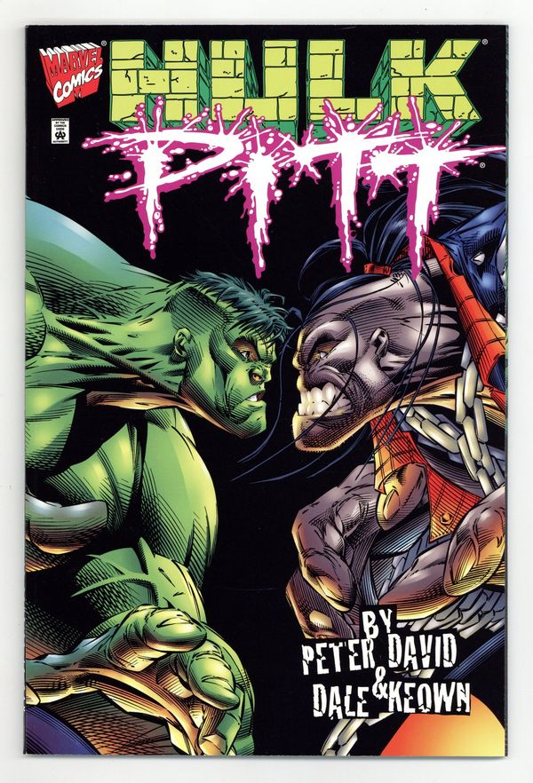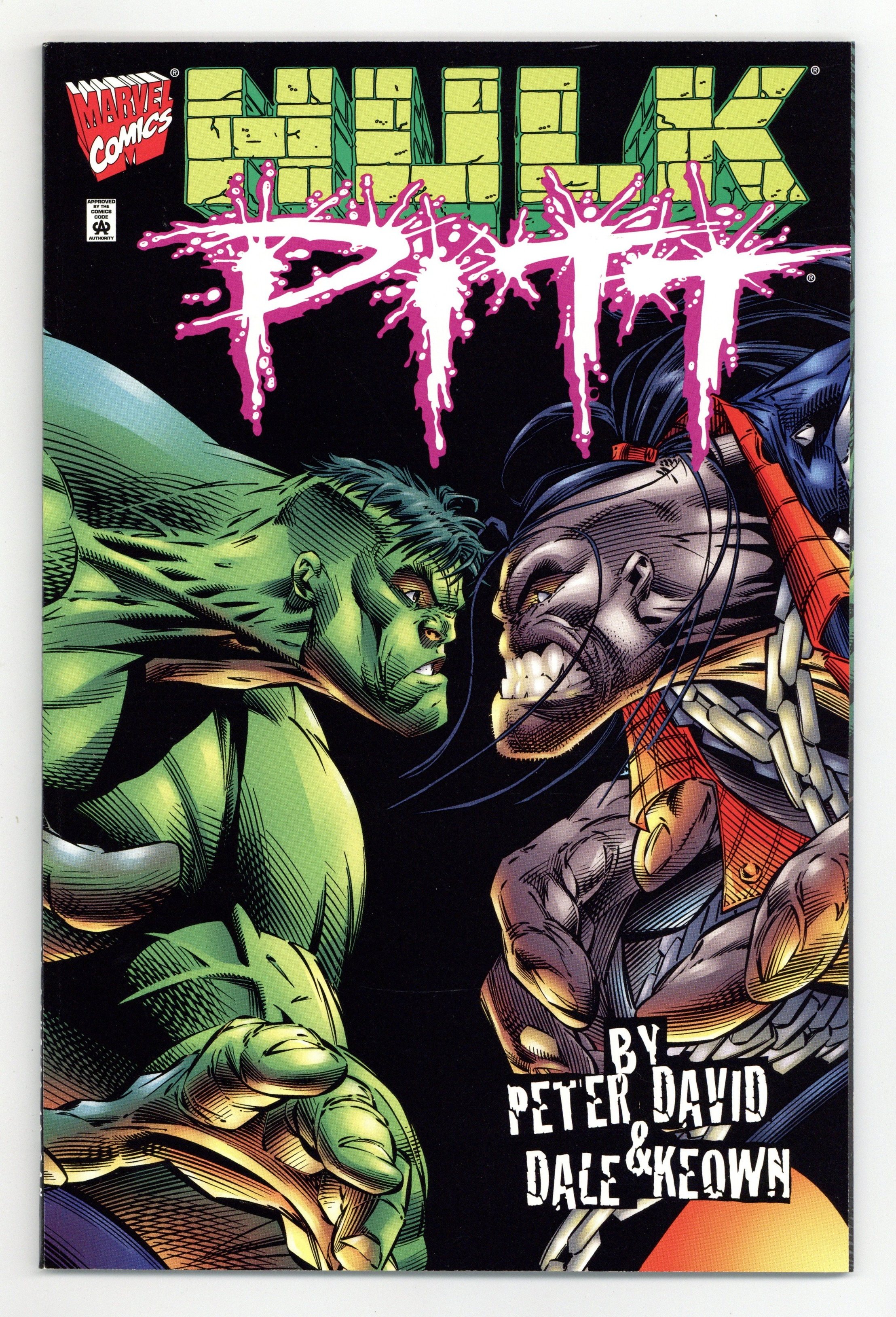 Tags: Hulk$14.00It's the Green Goliath vs. the Gray Gargantuan! Ladies and gentlemen and children of all ages...are you ready to rumble?! In this corner, guided to the ring by Rick Jones, wearing the torn purple trousers, the gamma-spawned giant men call the Hulk! In the opposing corner, led by a boy named Timmy, clad in the leather and chains, the alien atrocity known as Pitt! In this long-awaited 48-page bookshelf, it's the ultimate battle of the titans, brought to you by the classic Incredible Hulk team! Written by Peter David. Art by Dale Keown and Dan Panosian. Cover price $5.99.
