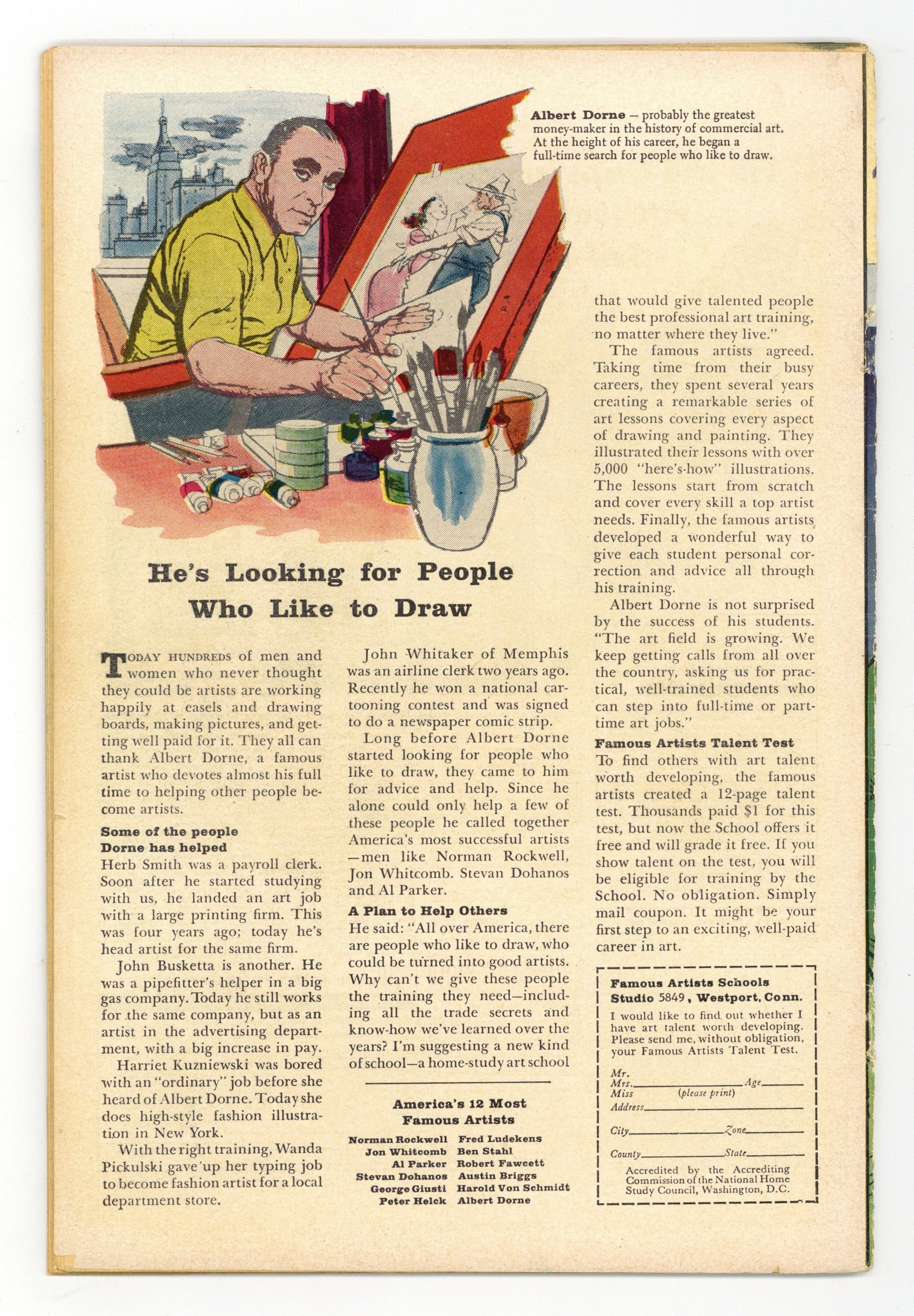 Cover by Jack Kirby and Don Heck. The Creature from Kosmos!, script by Stan Lee and Ernie Hart [H. E. Huntley], art by Jack Kirby and Don Heck; When a fellow scientist is killed by an alien being, Ant-Man enlists the help of the dead man's daughter. Blueprint for Victory text story. Hunted, script by Stan Lee, art by Steve Ditko; In the year 2000 all of New York City is searching for a 'plague carrier' who is attempting to escape notice and flee the city; He is apprehended at a transportation center and the police remove the 'plague' from him which turns out to be a handgun he had stolen from a museum which officials had worried could back bring the plague of war. 36 pgs., full color. $0.12. Cover price $0.12.