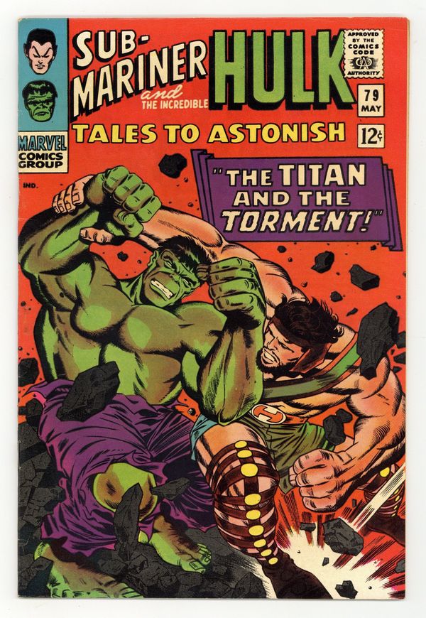 Cover by Jack Kirby and Bill Everett. When Rises the Behemoth, script by Stan Lee, art by Gene Colan (as Adam Austin) and Bill Everett; Little realizing that he is under the control of the Puppet Master, the Army tries to capture Namor for robbing a bank; After being shot in the arm, Namor seeks the healing power of water and winds up in the Hudson River; There he encounters Lady Dorma who has come to the surface world to retrieve him as the Behemoth has awakened and is menacing Atlantis. The Titan and the Torment, script by Stan Lee, art by Jack Kirby and Bill Everett; Zaxon tries to sap the power of the Hulk for his own nefarious ends but ends up getting himself killed in the process; Free once again, the Hulk rips up some train tracks to throw at pesky fighter jets and wouldn't you know that Hercules just happens to be riding in the oncoming locomotive; Hulk and Herc battle to a standstill before the jade giant leaps off to fight another day. 36 pgs., full color. $0.12. Cover price $0.12.