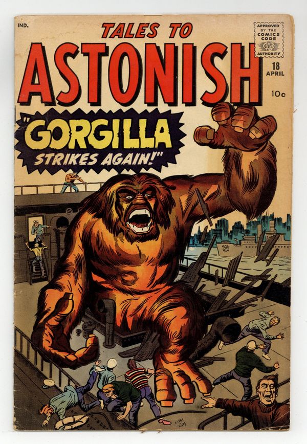 Cover by Jack Kirby and Dick Ayers. Gorgilla Strikes Again! Part 1, art by Jack Kirby and Dick Ayers; Gorgilla stows away on a ship to America to contact the human race, but is met with fear and violence in New York. Gorgilla Strikes Again! Part 2, art by Jack Kirby and Dick Ayers. The Stranger, art by Joe Maneely. Monsteroso, art by Steve Ditko; A creature hatches from an egg and imagines itself lord of all it surveys, but it is suddenly drowned, as it is only a microbe in a scientist's culture. Robot on the Rampage!, art by Steve Ditko; A robot stationed at a lighthouse rebels against his human master and the man manages to lock the robot outside where the food supply is stashed, but thanks to the salty sea air, it rusts completely within a mere matter of hours rendering it harmless to carry out its threats. 36 pgs., full color. $0.10. Cover price $0.10.