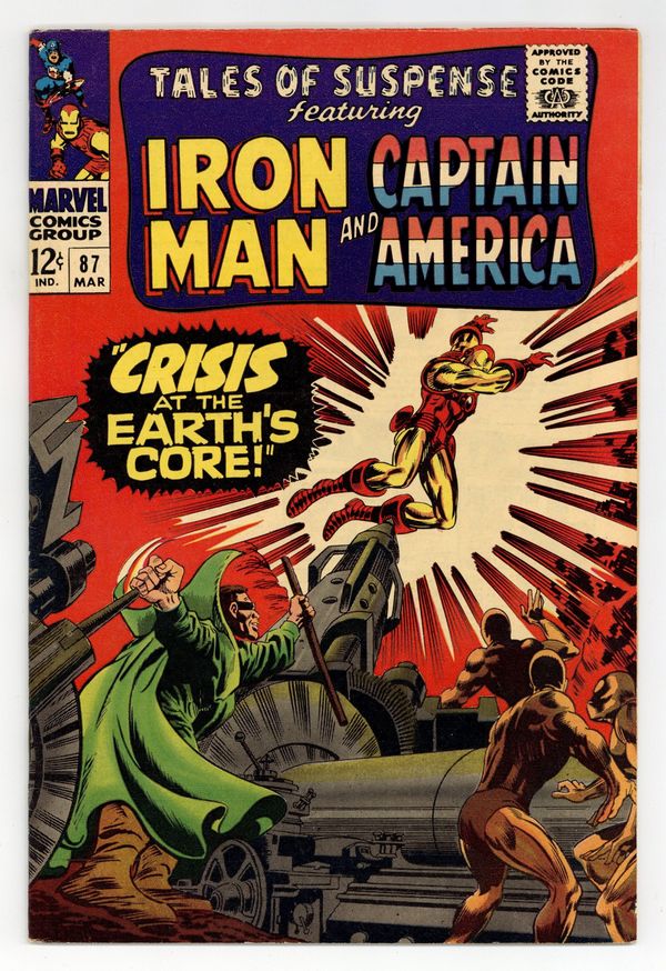 Cover pencils by Gene Colan, inks by Frank Giacoia. "Crisis - at the Earth's Core!", script by Stan Lee, pencils by Gene Colan, inks by Frank Giacoia; Iron Man investigates the collapse of a house and enters the subterranean world; Mole Man shoots a cannon that causes a rock slide to collapse over Iron Man. "Wanted: Captain America!", script by Roy Thomas, pencils by Jack Sparling, inks by Joe Sinnott; Disguised as Captain America, the Planner robs banks with his gang, but is foiled by the real Cap. 36 pages, full color. Cover price $0.12.