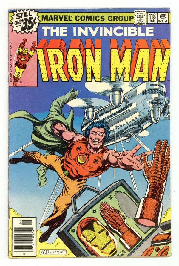 Tags: Marvel Legacy Numbering: Iron Man (part 118), Iron Man$27.50First appearance of James Rhodes in "At the Mercy of My Friends!" Part 1 of 2. Guest-starring Nick Fury. Plot by David Michelinie and Bob Layton. Script by David Michelinie. Art by John Byrne (layouts) and Bob Layton (finishes). Cover by Bob Layton. Tony Stark visits the SHIELD Helicarrier for a NATO conference, but rouge agents throw him out over the skies of Western Europe! Fortunately (as shown on the terrific cover), Tony has his briefcase with him! But can he change into his armor in time? Cameo appearances by Mrs. Arbogast and Bethany Cabe. 32 pages. Cover price $0.35.