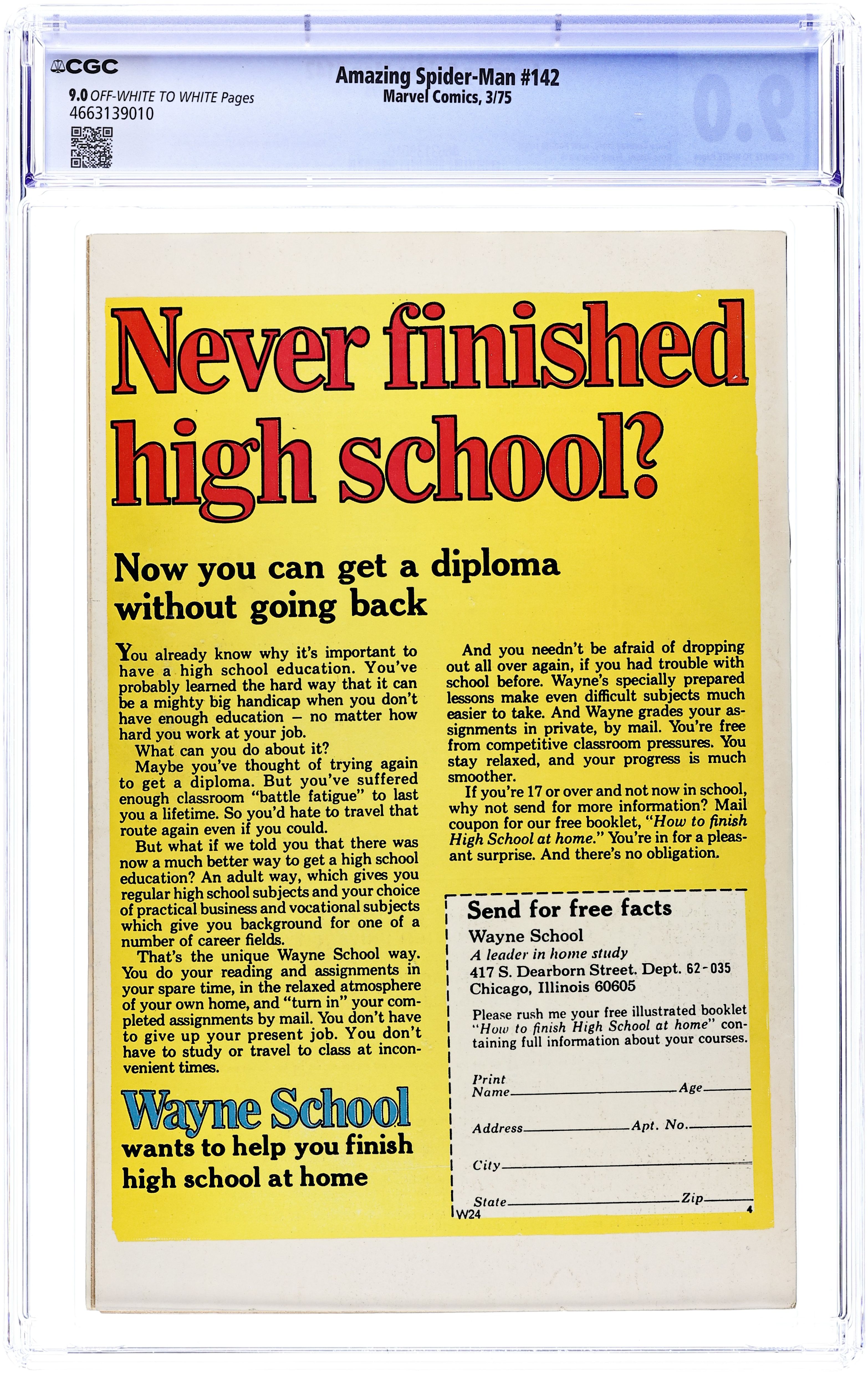 Tags: Marvel Legacy Numbering: Amazing Spider-Man (part 142), Spider-Man Clone Saga (part 00B)Amazing Spider-Man (1963 1st Series) 142 CGC 9.0