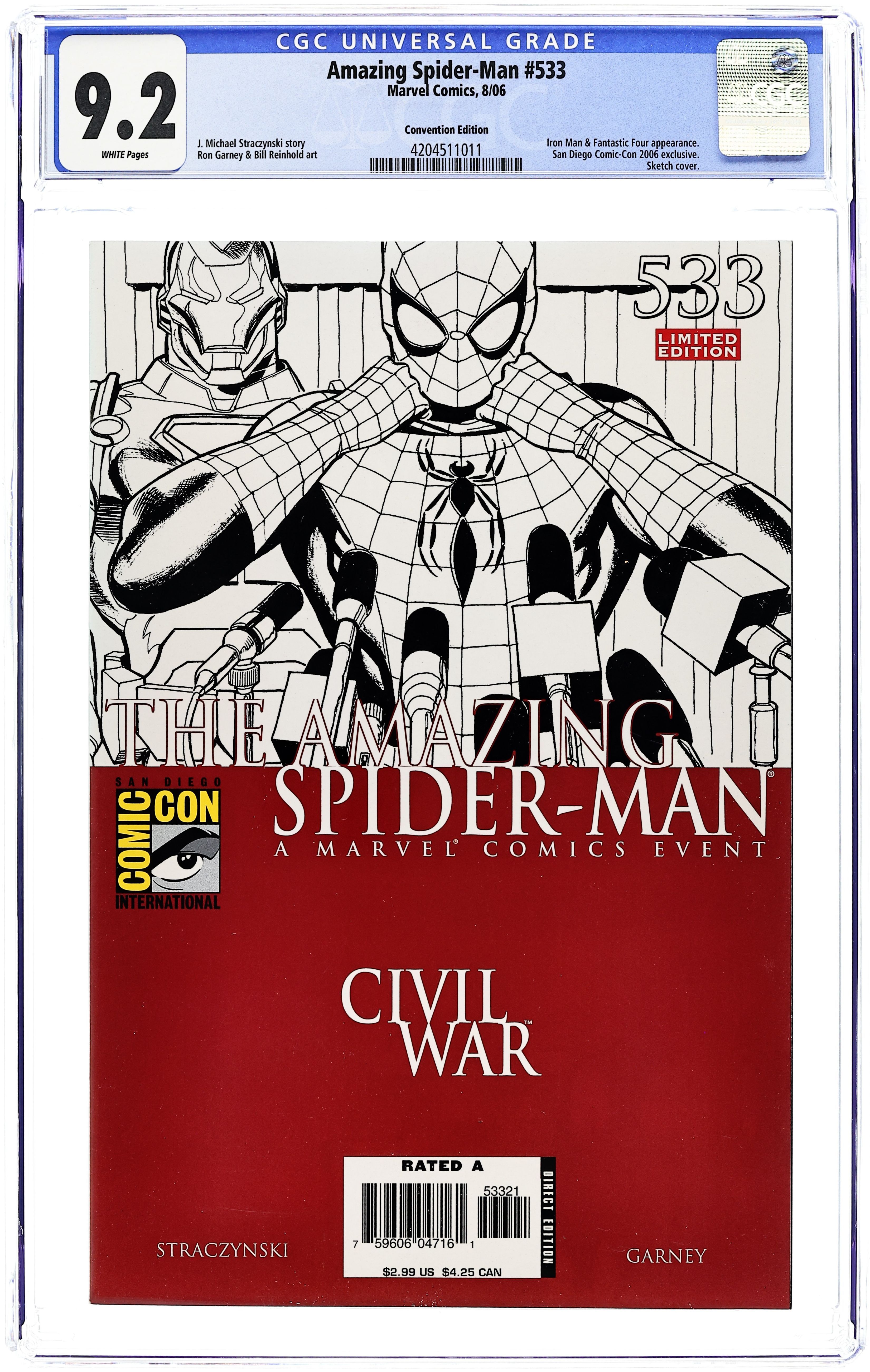 Tags: Civil War (Marvel) (part Tie-In), Marvel Legacy Numbering: Amazing Spider-Man (part 533), Spider-ManAmazing Spider-Man (1998 2nd Series) 533B CGC 9.2 Garney SDCC B&W Variant