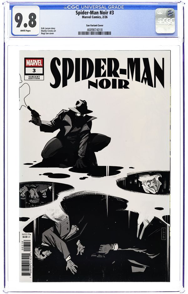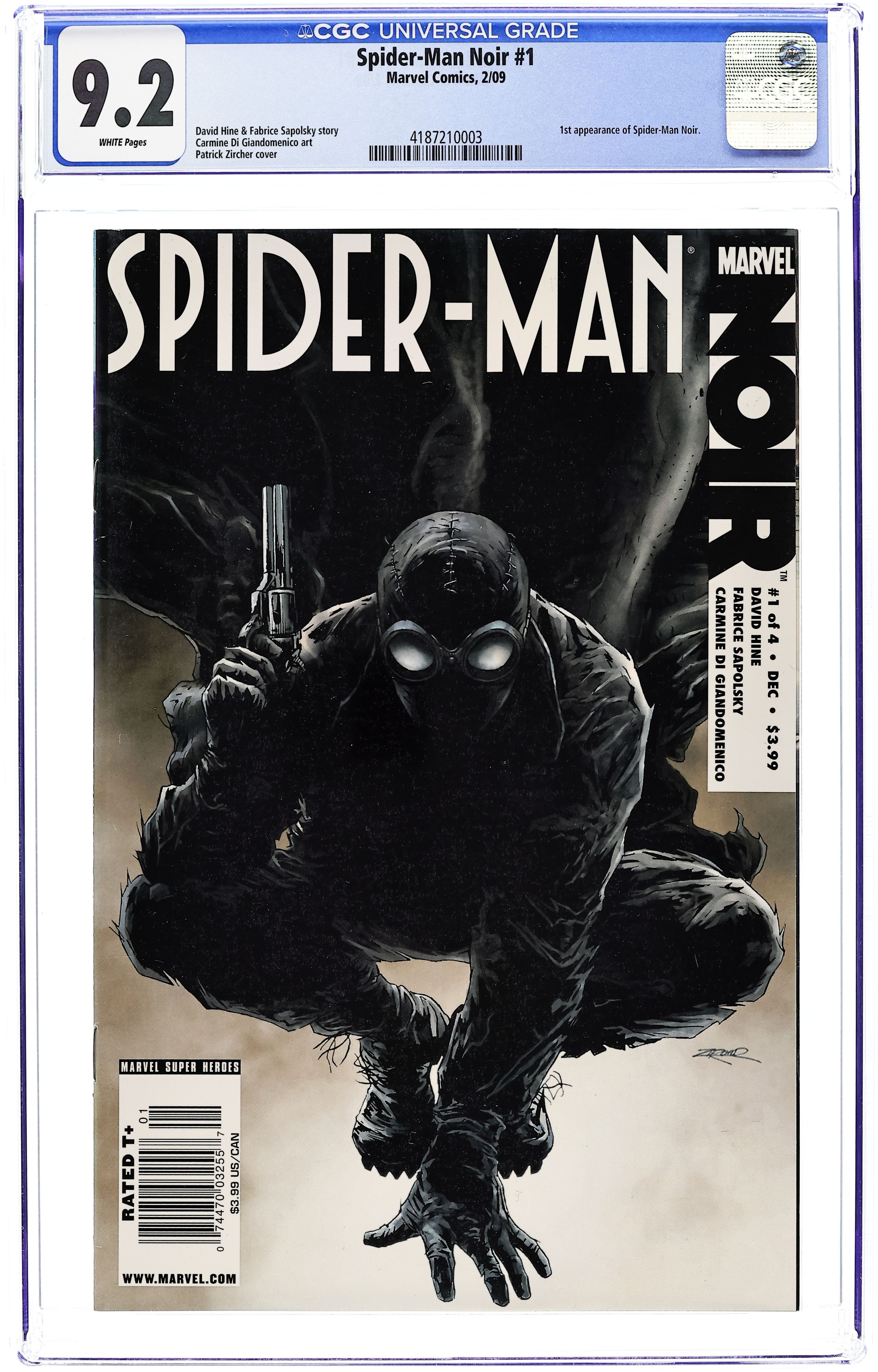 Written by Margaret Stohl. Art by Juan Ferreyra. Cover by Dave Rapoza. MURDER AND MYSTERY IN THE MIGHTY MARVEL MANNER! DATELINE, 1939! As the specter of war looms on the horizon, SPIDER-MAN: NOIR fights the good fight at home, stopping the injustices of a more friendly-neighborhood variety. But after a dame is murdered at The Black Cat nightclub and all clues point overseas, Spidey will have no choice but to board the next flight to Europe and kick off a globetrotting adventure through yesteryear of the Marvel Universe! 28 pages PC/B&W. Rated T+ Cover price $3.99.