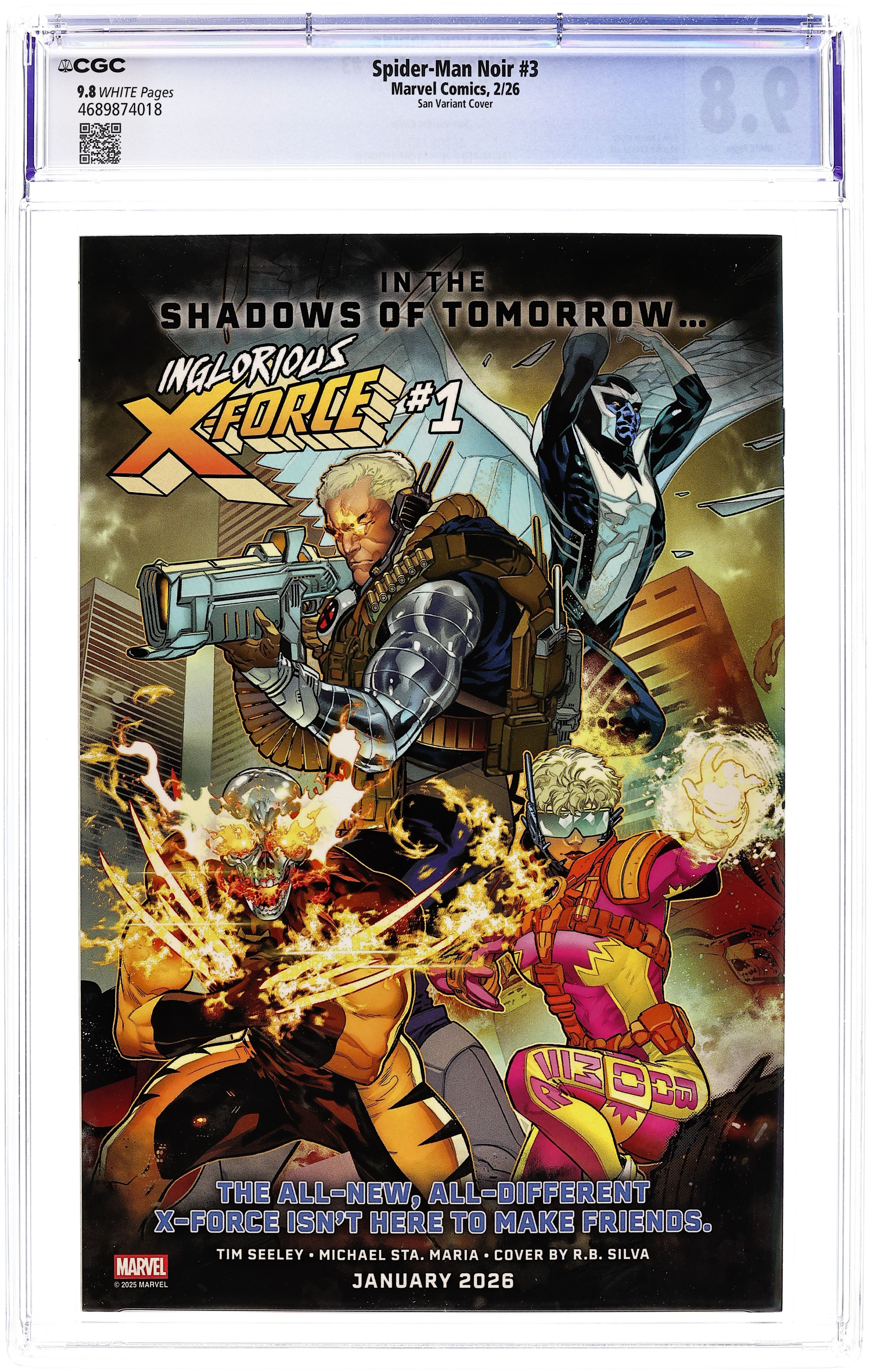 Written by Margaret Stohl. Art by Juan Ferreyra. Cover by Ron Lim. MURDER AND MYSTERY IN THE MIGHTY MARVEL MANNER! DATELINE, 1939! As the specter of war looms on the horizon, SPIDER-MAN: NOIR fights the good fight at home, stopping the injustices of a more friendly-neighborhood variety. But after a dame is murdered at The Black Cat nightclub and all clues point overseas, Spidey will have no choice but to board the next flight to Europe and kick off a globetrotting adventure through yesteryear of the Marvel Universe! 28 pages PC/B&W. Rated T+ Cover price $3.99.